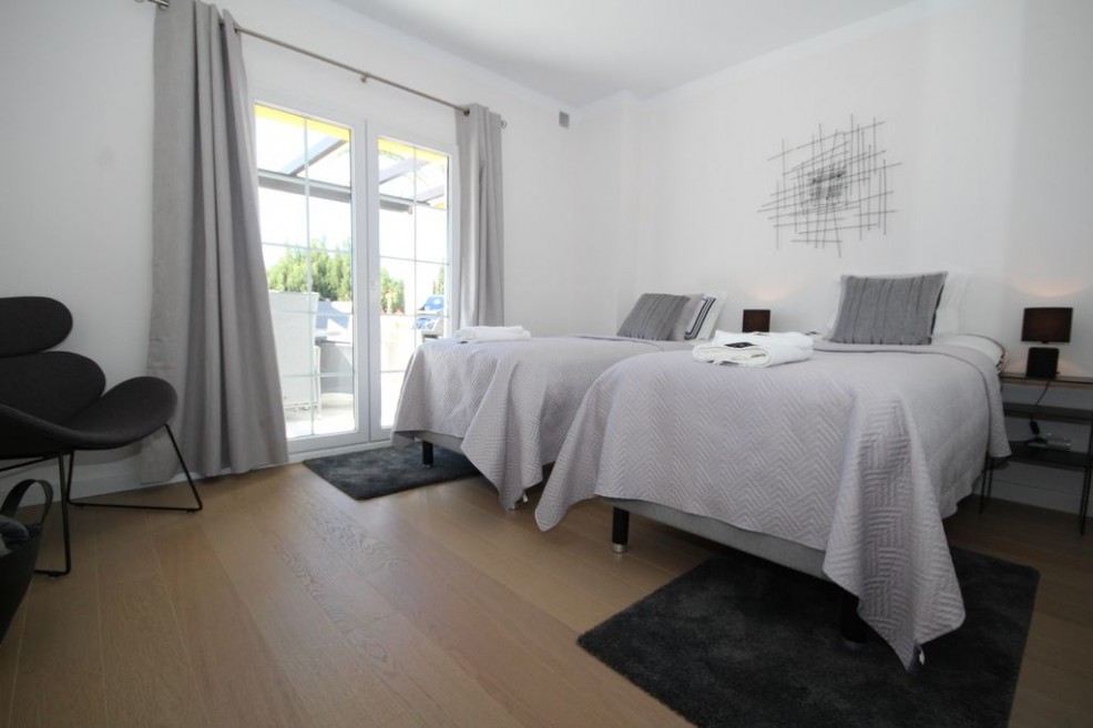 The living room and one of the bedrooms have direct access to the terrace in a lovely western location and overlooking one of the pools. The terrace offers both a Weber grill and a nice dinner furniture. From here you can enjoy the lovely surroundings, a romantic sunset dinner or just relax with a book.