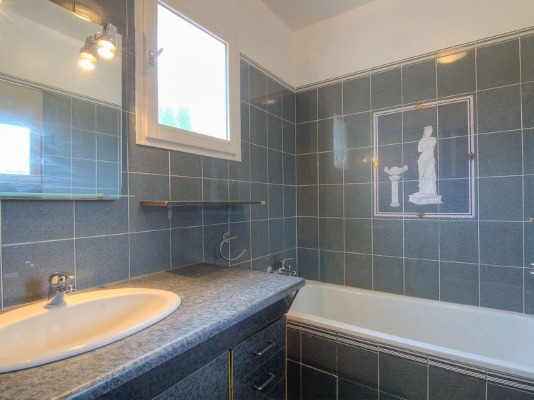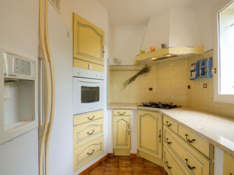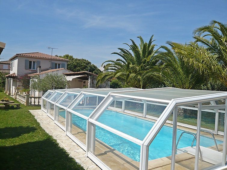 Detached house "this property". In the district of Hauts des Bouteillers, in the resort, in a quiet position in the residential district, 1 km from the sea, 1, 2 km from the beach. Private: Property in the natural state of 1'100 m2 (fenced), swimming pool (8 x 4 m, depth 110 - 160 cm, 01. 05.-31 .10.) With internal staircase. Pool house with fridge and stove, barbecue, parking at the house. Shop 1. 2 km, grocery 600 m, supermarket 1 km, bakery 600 m, sandy beach "La Croisette" 1. 2 km. Sports harbor 1. 6 km, golf course (18 holes) 2. 5 km. Nearby attractions: Aqualand 3 km.