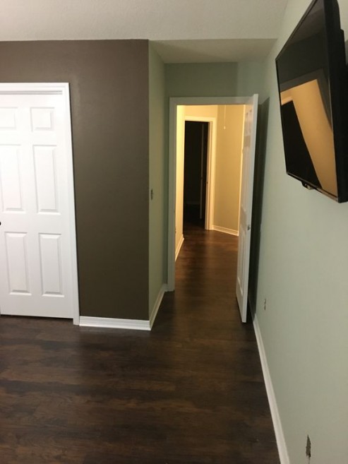 *Downstairs Bedroom has a twin over full size bed with foam mattress. It includes a flat screen TV, dresser, and a closet. This room leads to a newly built patio and with a fenced yard and a Bbq grill.