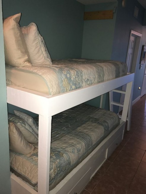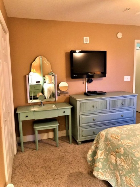 Overall the condo was okay. Disappointing that the vanity bench was broken. One of the reasons I chose that particular condo was the vanity table. The rug in the bedroom was quite dirty, the ice dispenser was so disgusting we did not use it. The balcony was covered in bird poop and the owl was not very effective. We were afraid to use the frying pans because the coating on the cooking surface was scratched and scraped and have always been told that it’s dangerous to cook when that happens. We also couldn’t find a baking sheet so we went out and bought a skillet, baking sheet and also a chair to use at the dressing table. Compared to what we have rented in the past this one could use some updating and a good cleaning. We traveled with two other couples and both of their condos were much nicer and cost much less.