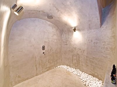 The Pyrgos Old Winery Villa is a blend of functionality and absolute comfort with a minimalist outdoor bath with Jacuzzi, 2 comfortable bedrooms, kitchen, elegant living room, walk in closet, TV, CD-DVD player and WiFi will give you an even more pleasant and comfortable stay.