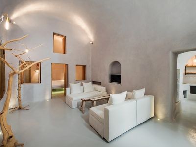 Ammos Oia Mansion is a blend of functionality & absolute comfort with a minimalistic bathroom with 2 jacuzzi, 2 comfortable bedrooms, kitchen, stylish livingroom, Ac in both bedrooms, television and WiFi will give you an even more pleasant and comfortable stay.