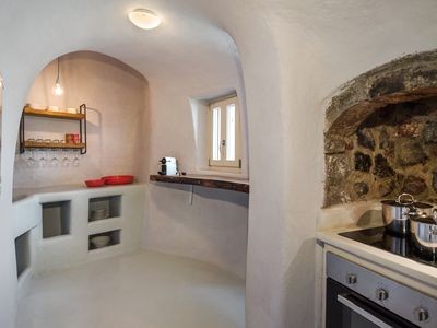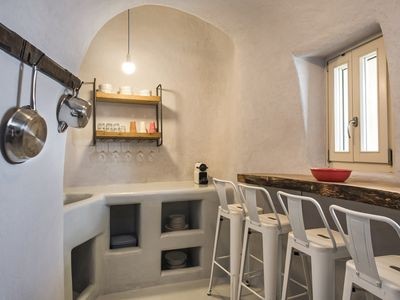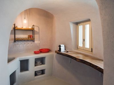 Ammos Oia Mansion offers the real Greek island experience, either you are in the kitchen or in one or another bedroom you have the best caldera view. Which gives to the villa a unique privilege.