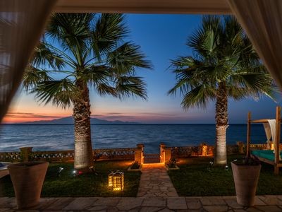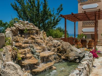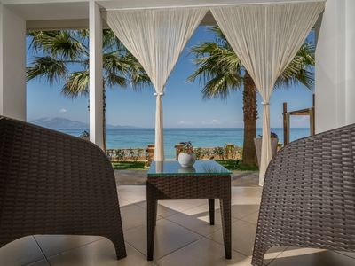 Palm Studios are two ground floor studios both offering double bed and soba bed as well as a private bathroom with bathtub and can accommodate up to 2 adults + 2 children. The studios are beautifully decorated and offer a spacious veranda with dining table and chairs that leads directly to the garden and enables the guest to enjoy the sea view.