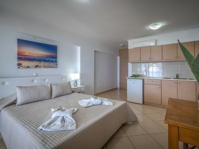 The studios are self-catering and fully equipped with a/c, fridge, electric hobs and oven, microwave, filter coffee maker, TV and kettle as well as private bathroom with bathtub.