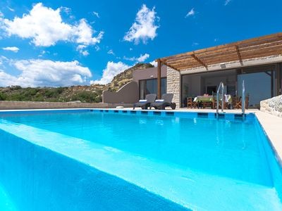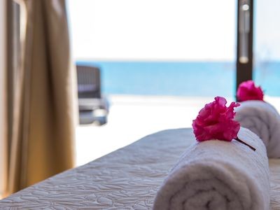 Mary beach villa Dio is a modern, brand new, beachfront, 3 bedroom villa with private infinity pool, overlooking the unique Libyan sea, literally a few steps away from the sandy isolated beach of Laki. It is very close to 3 taverns, while homemade cooking based on traditional recipes and local fresh products, can be prepared, on demand, by the hospitable owners.