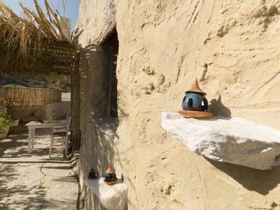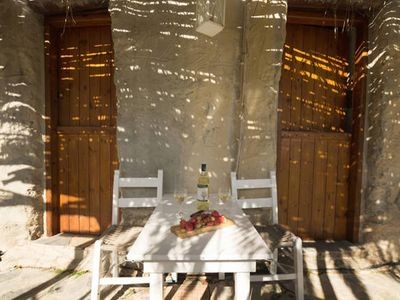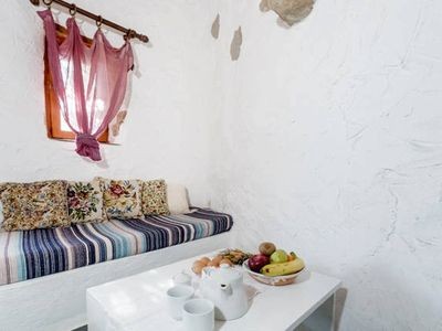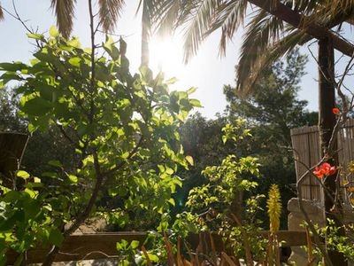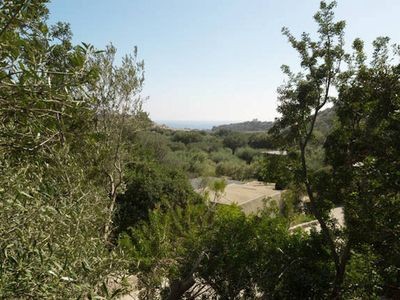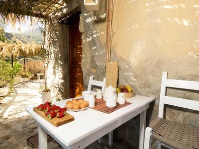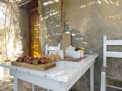 The cottages nestle on the hillside among olive groves, carob and pine trees,