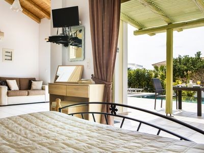 Approached via a quiet country lane and within easy striking distance of the beach and nearby amenities, Caretta Beach Villa offers the best of both worlds, stress free relaxation away from it all, and the vibrant life of nearby Skala and Katelios, with their shops, tavernas and bars, a short drive away. A car is essential at this property, as at almost all villas on Kefalonia, as there are no shops or restaurants in the immediate vicinity.