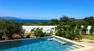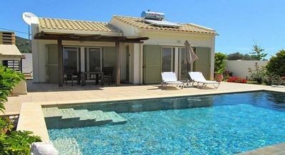 This lovely little private villa for two with its own pool is located just 10 minutes’ walk from Kefalonia’s famous Turtle Beach yet only two miles from the small town of Skala in one direction and the village of Katelios in the other. The villa is in a secluded and peaceful spot on a headland above Turtle Beach, set within private gardens.