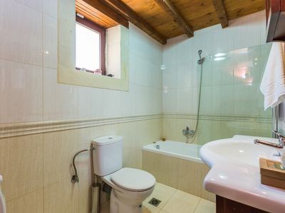 All three of Villa Poseidon’s bedrooms are located on the first floor, two of which boasts a double bed, while the last one features two single beds. All bedrooms are air conditioned, have a wardrobe and a TV with satellite reception. One of the double bedrooms has its own small veranda at the rear part of the Villa, equipped with patio furniture. Furthermore, a shared bathroom with a bathtub can also be found on the first floor. Finally, after climbing a free steps, guests can access a large shaded veranda, also equipped with patio furniture, which also enjoys stunning views of the nearby hills, fields and the Lybian sea and overlooks the pool area.