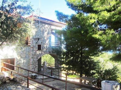 The exterior has large balconies and big yards where visitors can enjoy wonderful sunny breakfasts, infants can safely play around and adults relax under the pine trees' shadows with the sea breeze and singing cicadas soothing the Greek sun.