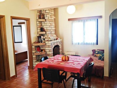 The interior is bright with a space of 70sqm consisting of 2 bedrooms, 1 cozy living room with stone made fireplace, a fully equipped open kitchen and one bathroom.