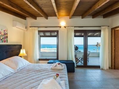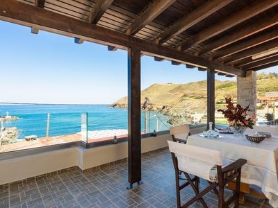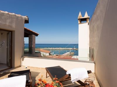 Overlooking the Cretan sea right in front, Penelope Home is a 195 sq. m luxurious property provides a coastal getaway with expansive views in Panormos, Crete.