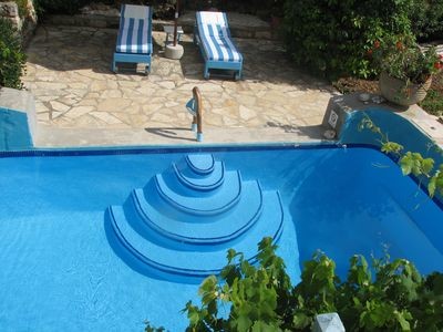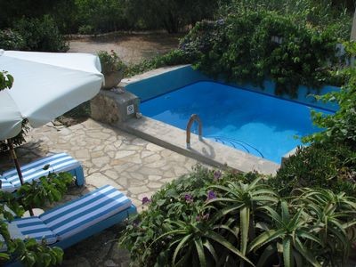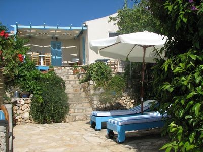 The Villa is self catering and romantic having been lovingly restored from Grandfathers old house, reclaiming the old rain water reservoir as pool area. Charming hand crafted wooden beams natural light and airy decor throughout, with modern finish. The ideal property for a Romantic getaway or honeymoon. Uninterrupted sea views to meadows and sea from private courtyard area, outside sun loungers near pool, and outsdie Dining area. It's romantic setting make it a firm favourite with Honeymooners and Nature lovers. Natural beaches nearby. Myrtos, Assos and Fiskardo easy drive