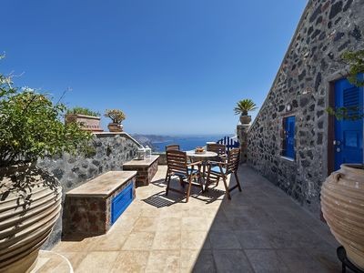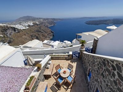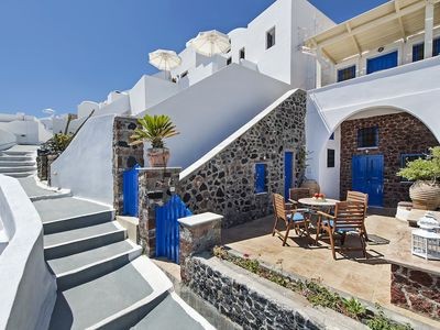 Adam and Eve villa is situated in the peaceful village of Imerovigli which is only 2 km away from Fira, the busy and charming capital of Santorini. It is very close to the main road that connects Imerovigli with Fira (3 minutes walk) and there are no steps between the main road and the property.