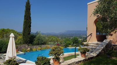 The pool area with sun-beds offers you the most amazing views! The patio area has table and chairs for outside eating. A parking area is at the rear of the villa.