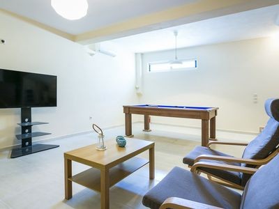 This high standards villa of unique architecture and contemporary decoration, fully air-conditioned and equipped with all the essentials for a comfortable stay, is ideal for a big family or a group of friends.
