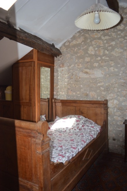 Upstairs are the four bedrooms and the bathroom. The main double bedroom overlooks the fields and woods, and has its own washbasin and a built-in antique wardrobe. The larger of the two twin bedrooms also has a basin and built-in wardrobe, and features antique beds.