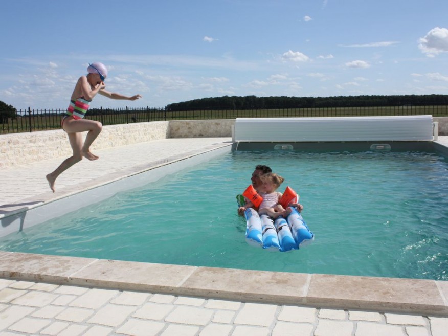 By its orientation allowing it to benefit from a sun all day, by its dimensions and by its specific facilities, the swimming pool was conceived especially to be a space of games and user-friendliness. It is secured by an above-ground electrical shutter and a fence wall. The water is not chlorinated.