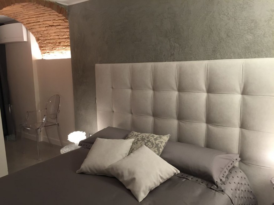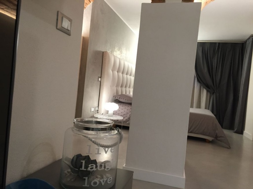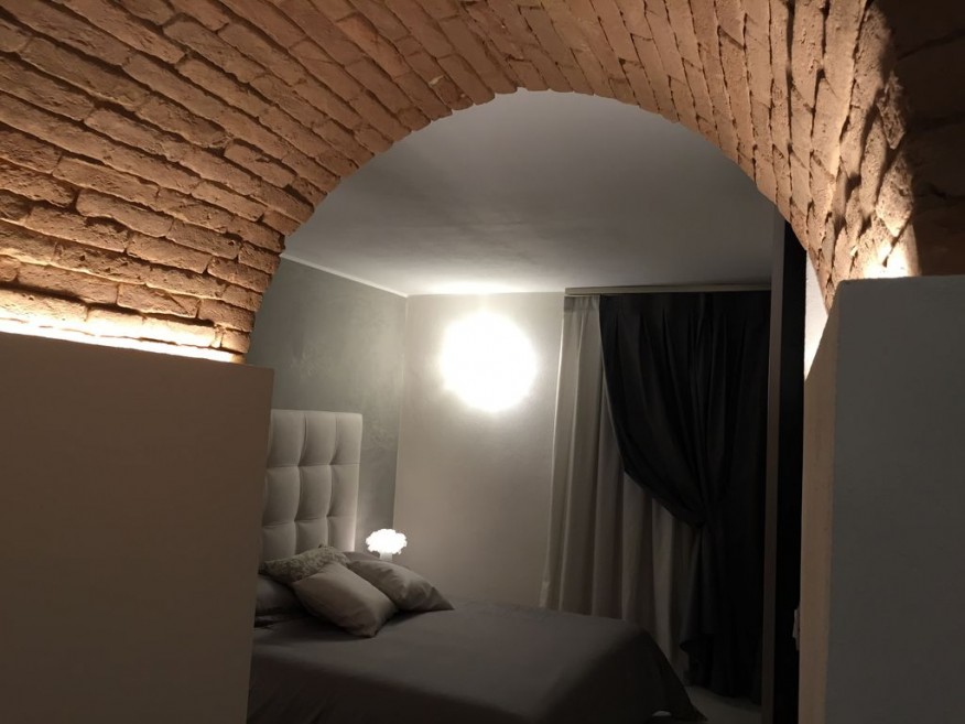Three suggestive arches lead to the back area, that features a king size bed (180x200 cm), that we can make also as two wide twin beds, and a full bathroom with shower.