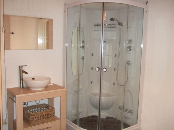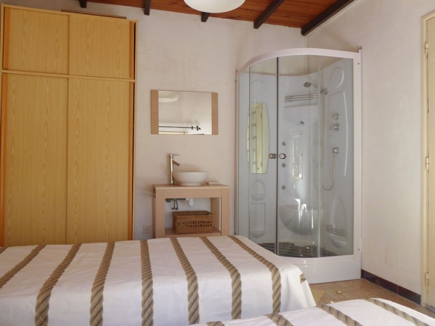 The shower-cabin and the extra wash-basin are located in the room with twin beds accessible by the terrasse.