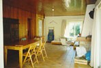 - a living room dining room with a kitchenette (2 hotplates, microwave), a dishwasher, a fireplace