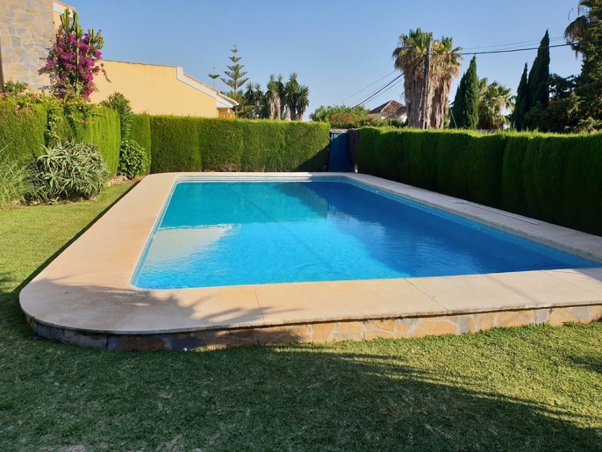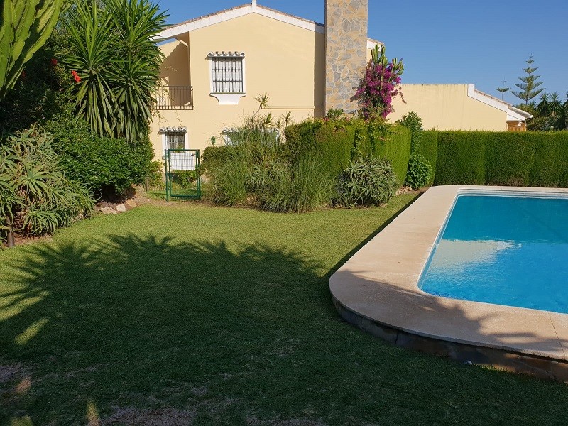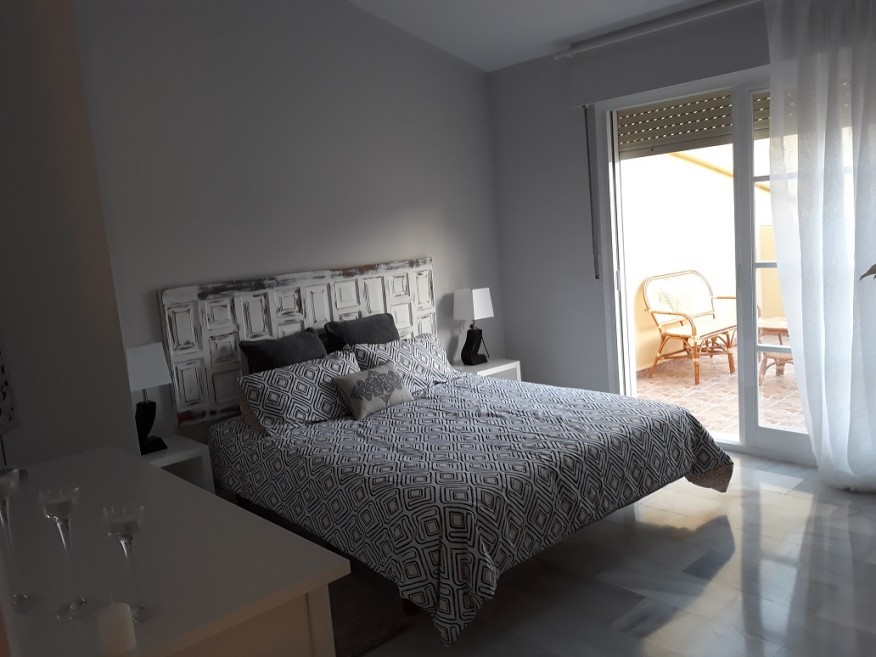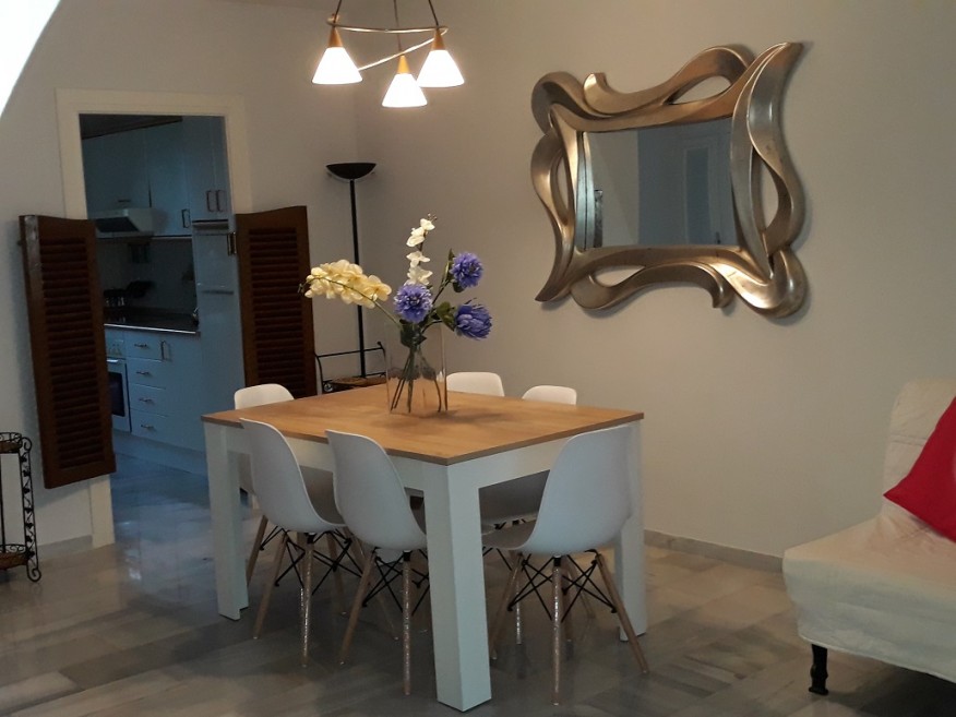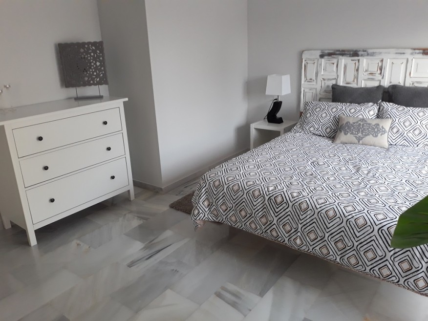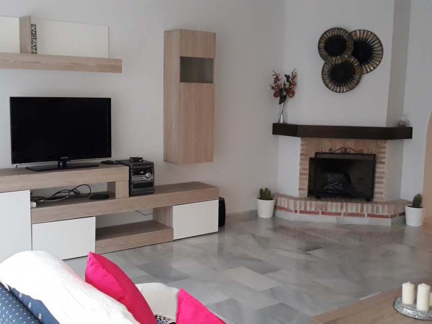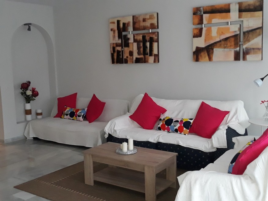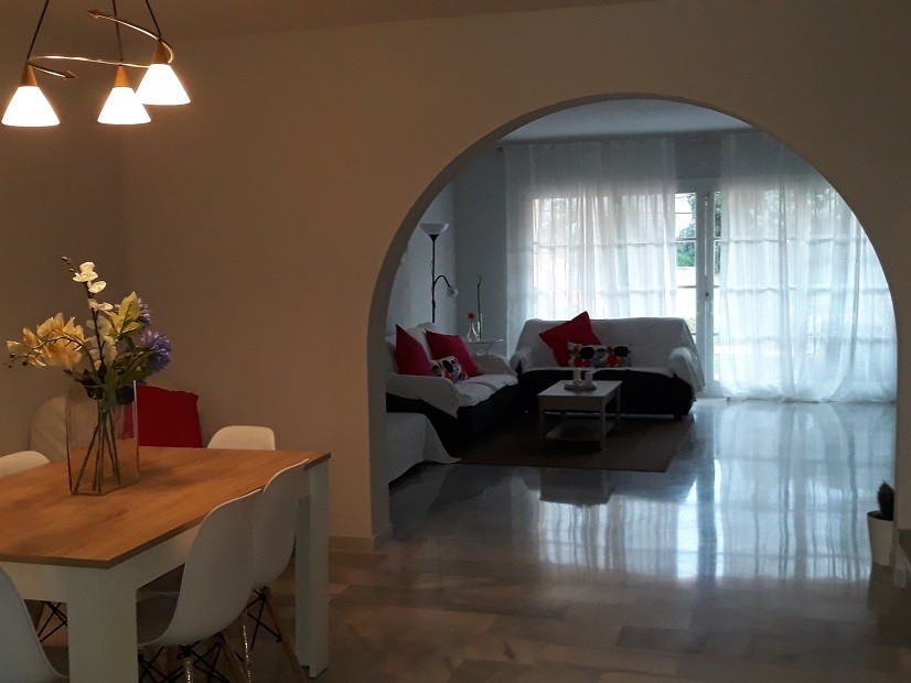 Renovated semi-detached house is rented, furnished brand new 120 m2, in the Gardens of Bel Air in Estepona, located just 5 minutes walk from shops, restaurants and supermarkets and 20 minutes walk from the beaches of El Saladillo. The House has 2 floors. On the main floor you will find a spacious living room with fireplace and separate dining room. Sofa bed and extra bed, kitchen and bathroom. This plant has access to a private garden. A small door goes to the community pool, which is within walking distance of the house and is only seven neighbours. On the second floor of the house are 2 bedrooms with double bed, both with terrace and a bathroom. Parking for 2 cars in front of the house. The house is up to 6 people. The urban centers of Estepona, San Pedro de Alcantara and Puerto Banus are within a 10 minute drive and Malaga International Airport is 45 minutes by car. Right next to the Pierre & Vacances Apartments. A couple of minutes from the luxury hotel Villa Padierna. Near the tennis club bel air. Price per day in July and August 180 250 per day. Off weeks and months.