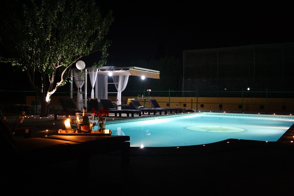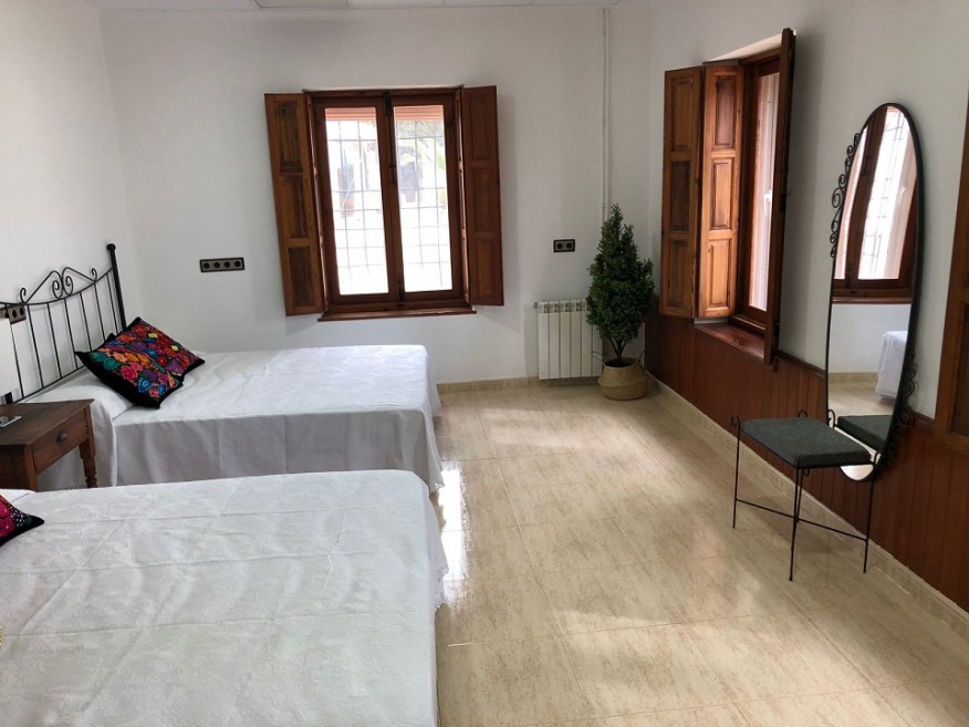 It has 5000 square meters of enclosed land with security alarm and vigilant 24 hours in a house outside the Hacienda. House and gardens recently fumigated. You can also ride on a pony or in your carriage, play with rabbits, dogs, chickens and sheep, enjoy the singing of approximately 200 canaries, enjoy freshly laid chicken eggs and organic fruit trees. Without sharing social areas or common areas!