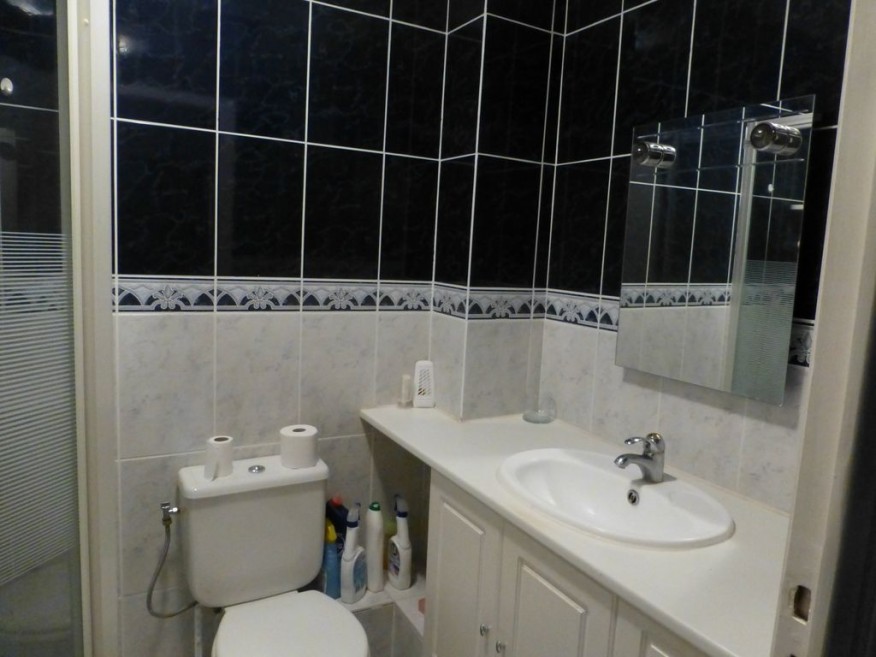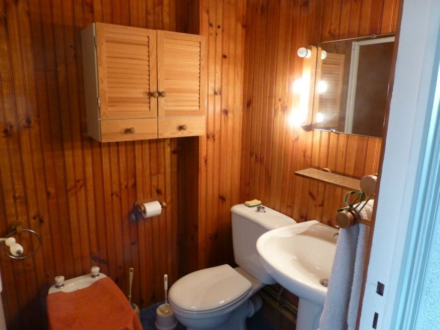 1st floor: 2 bedrooms with double beds, one with 3 large closets, and the other with wardrobe fabric, bathroom (shower, sink, toilet).