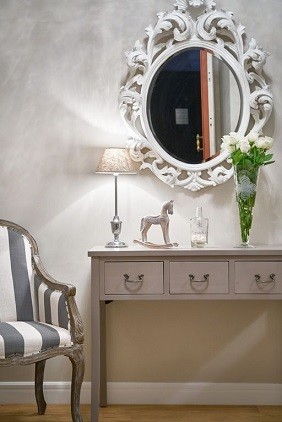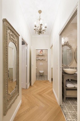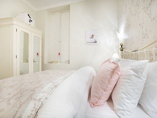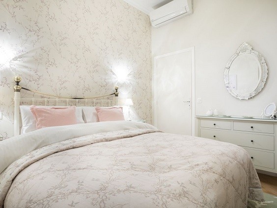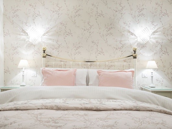 The second bedroom has a distinctive floral wallpaper of blue egg duck, pastel pink and antique cream. The room boasts a king size bed (160 cm) and boasts a variety of authentic-style bathroom suites that combine today's designs with today's technology.