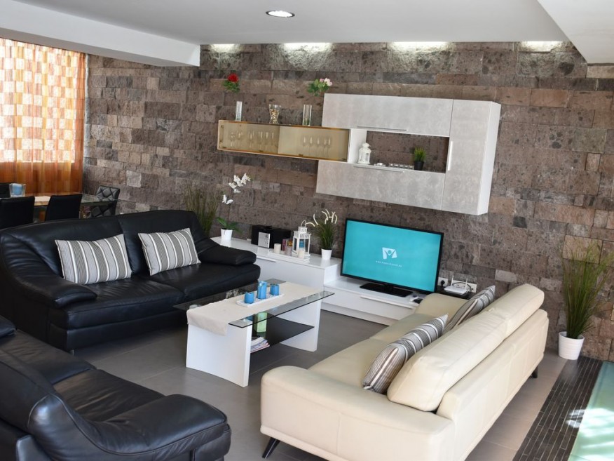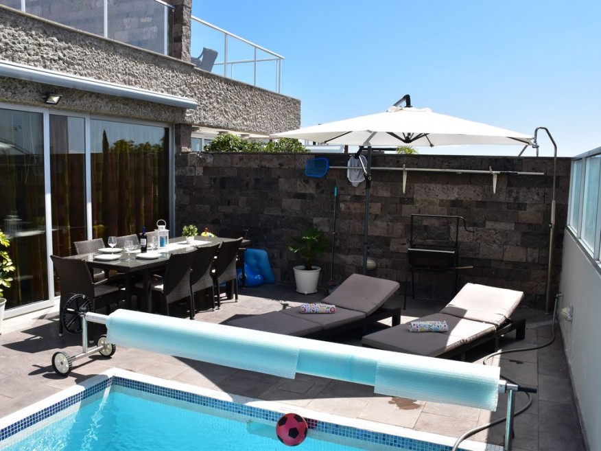 We were met on arrival to the villa and shown around and given keys. For a group of 3 families there was ample space and plenty of bathrooms. The pool was lovely and the BBQ was excellent. It had been really well cleaned which was great as in previous villas this has not been the case. The Villa has all the things you need to have a lovely stay. It is located in El Duque and the beach was a short walk away - as are all of the restaurants and the promenade that you can walk all they way into Los Cristianos if you want to. Had a lovely stay - location makes it a definite 5 stars! Car really isn't needed if you like to walk around - though we had hired a mini bus that fitted easily in the enormous garage.