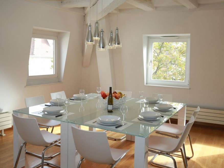 The apartment in Colmar has 3 bedrooms and has capacity for 10 people. The apartment is 165 m². The house is situated in a children-friendly neighborhood.The accommodation is equipped with the following items: lift, internet (Wi-Fi), hair dryer, central heating, air conditioning throughout the house, 1 TV, DVD.In the vitroceramic open plan kitchen, refrigerator, microwave, oven, washing machine, dishwasher, coffee machine, toaster and kettle are provided.