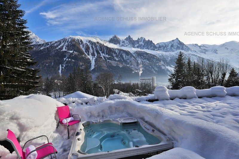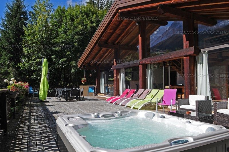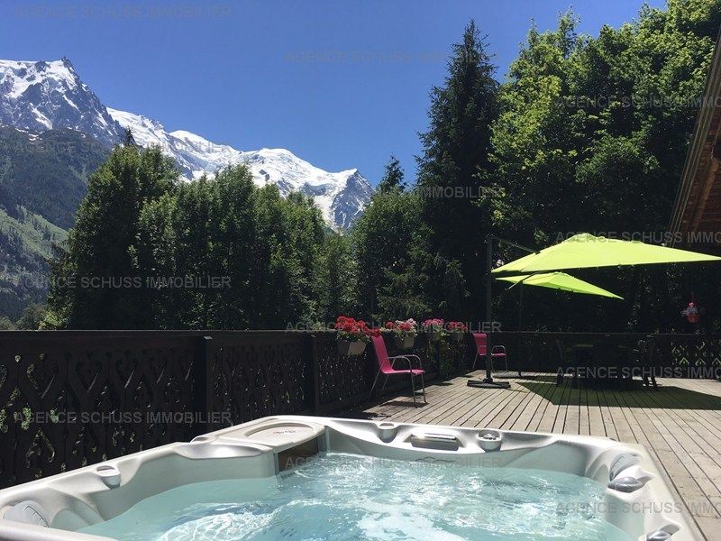 Very bright chalet sleeping 6 to 10 facing Mont-Blanc range, located in a very quiet and intimate atmosphere close to Golf course and ski lift La Flégère. Welnness area with sauna and Spa ! 100 sqm terrace facing Mont-Blanc range.