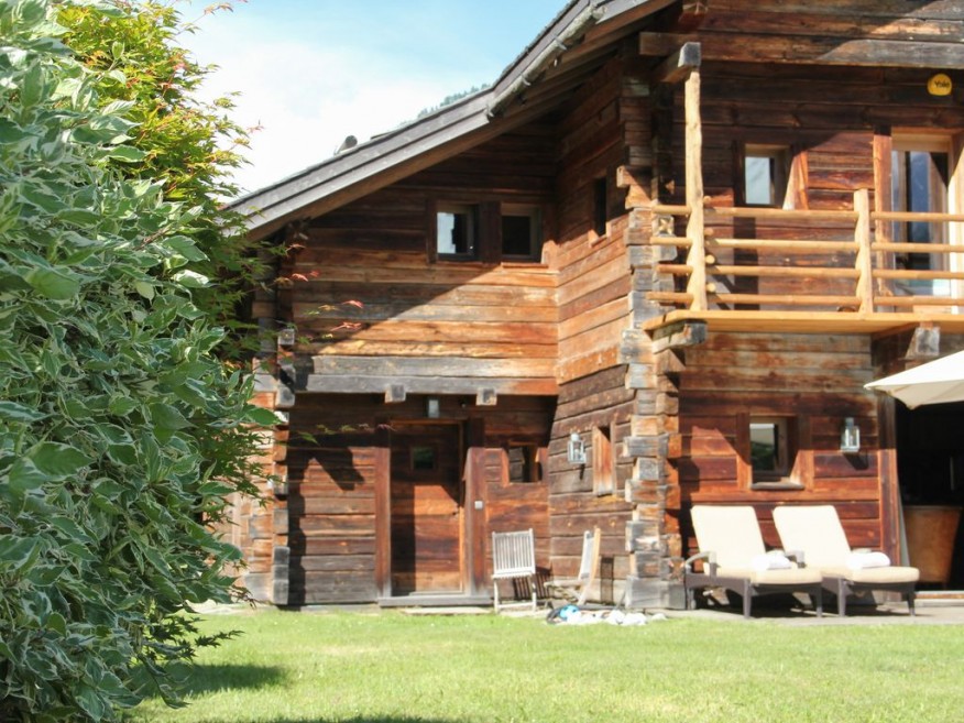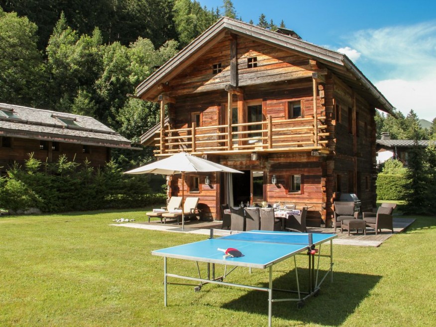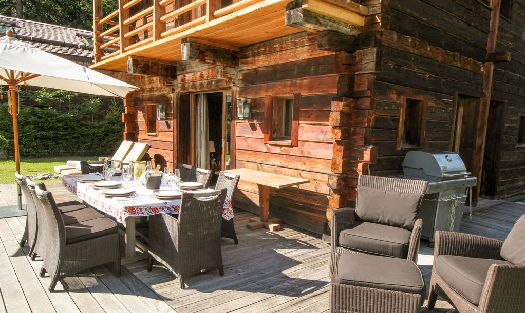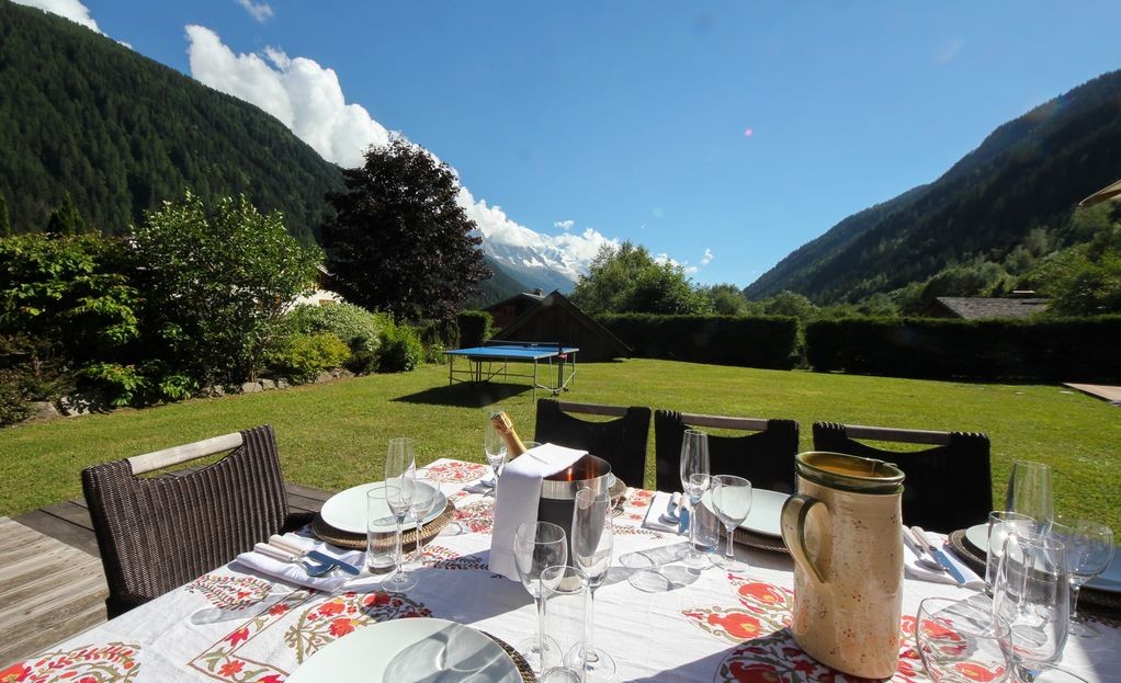 In summer the setting sun stays till late in the garden where guests can enjoy the BBQ and sun loungers as Mont Blanc turns first orange then pink.