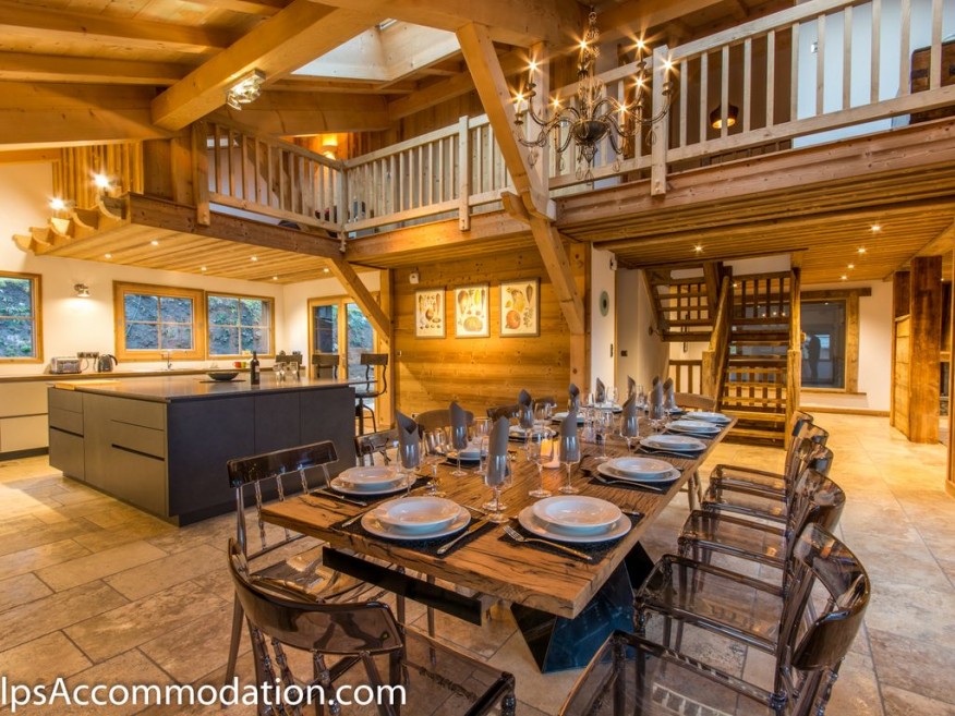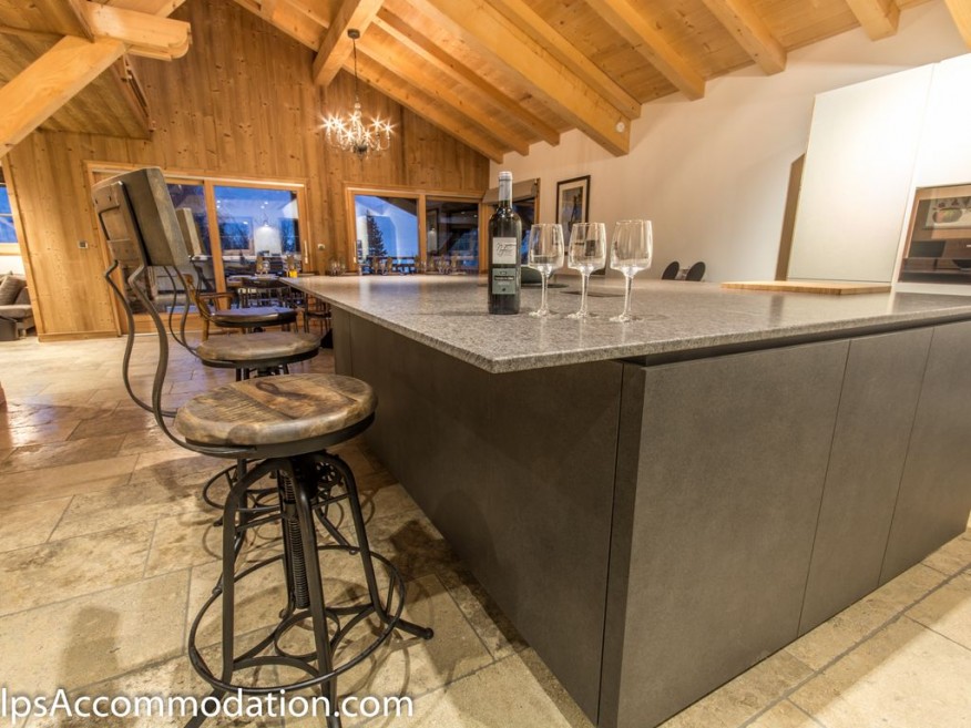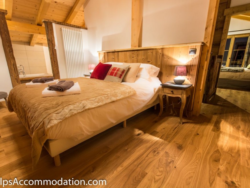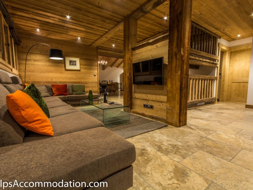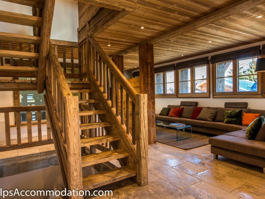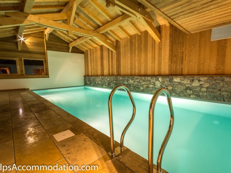 Chalet Le Strange, offered by Alps Accommodation Samoens is the absolute height of luxury, was newly constructed in 2016 and has been individually designed. With 5 bedrooms, 4 bathrooms, a snug, mezzanine with sofa bed, private indoor swimming pool, as well as a sauna, it sleeps 10/12 people in pure style. The chalet has an impressive 300m2 of living space, plus another 50m2 of snug, storage and space under the eaves. The chalet boasts the most space per person of any of the chalets in our portfolio, yet still manages to offer an elegant decor and graceful atmosphere.