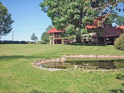 We have six acres sloping down to the east with the house at the highest point. There is about an acre of lawns, 2 acres of pasture grazed by sheep and 3 acres of woodland. We stay in a chalet about 100 yards from the main house so that we are on hand to deal with problems or supply information.