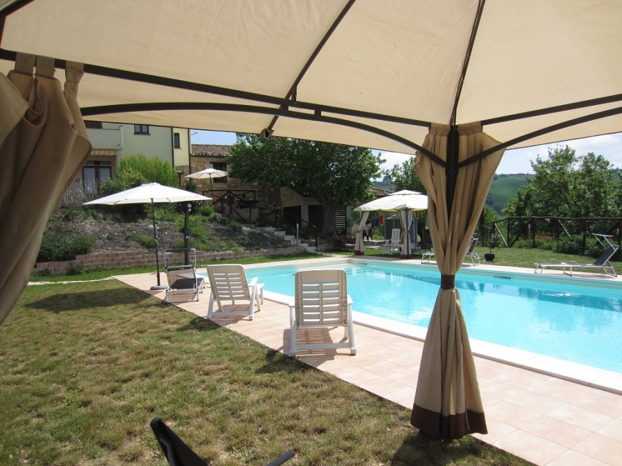 There is a large pool of 12x6m (salt electrolysis) with stunning views of the surrounding area and the Apennines, which has an elevated pool house with a portico.