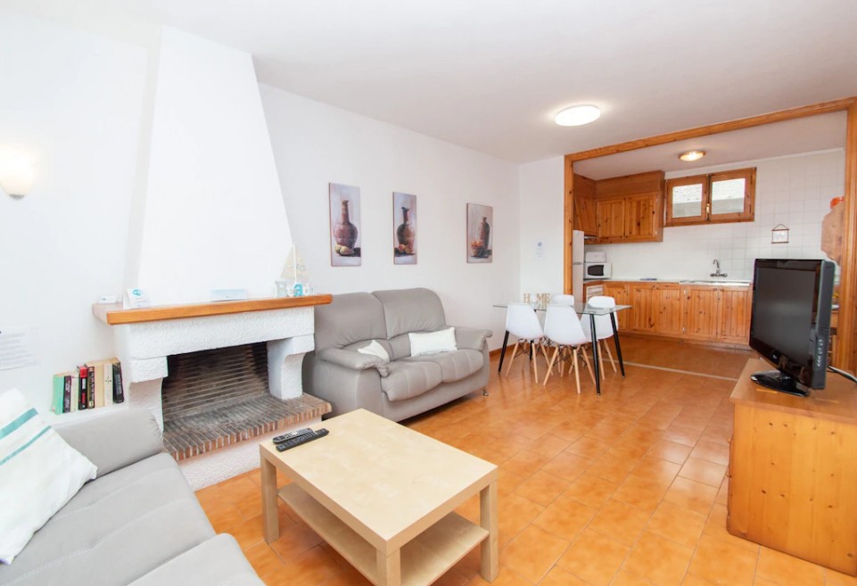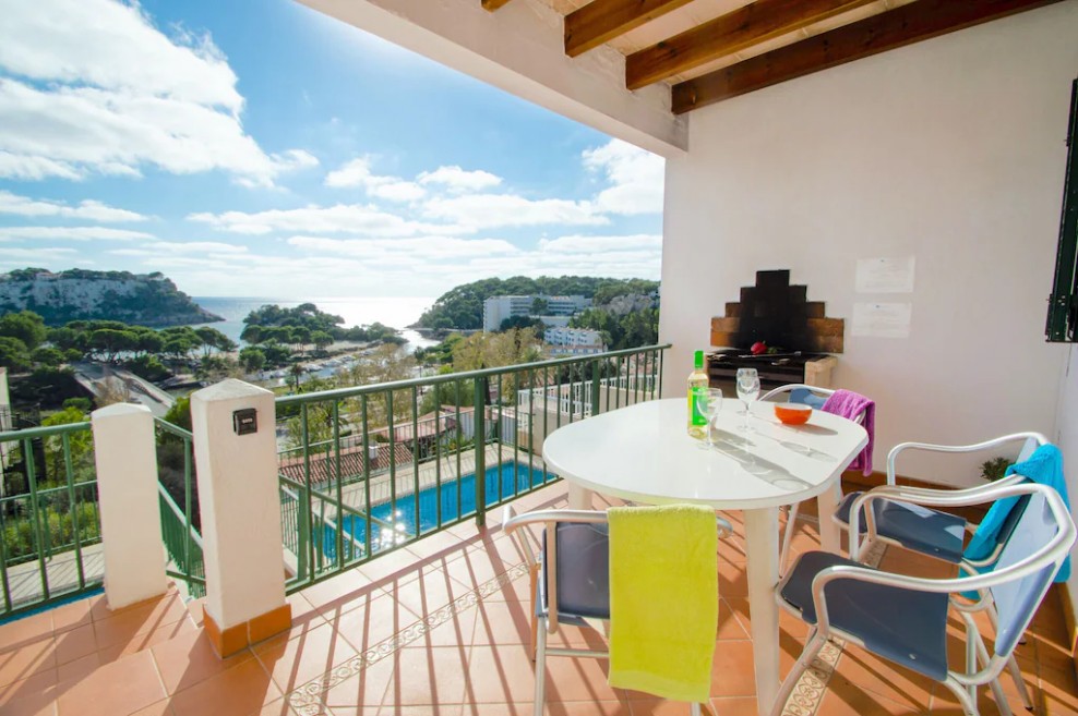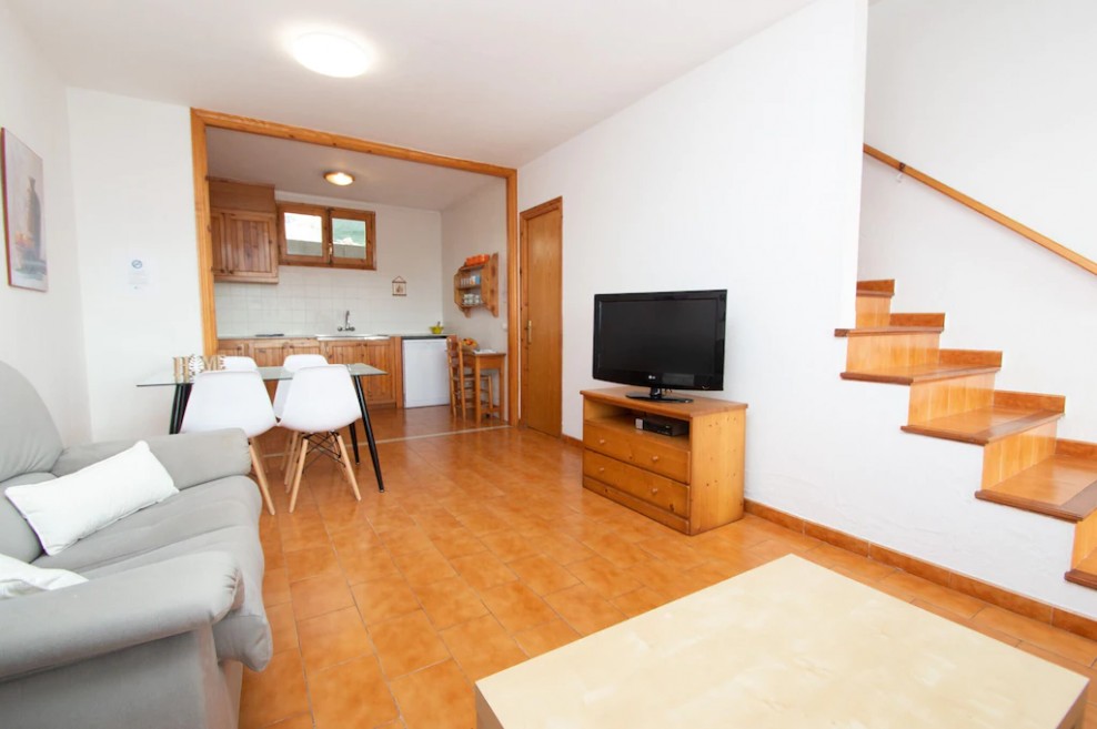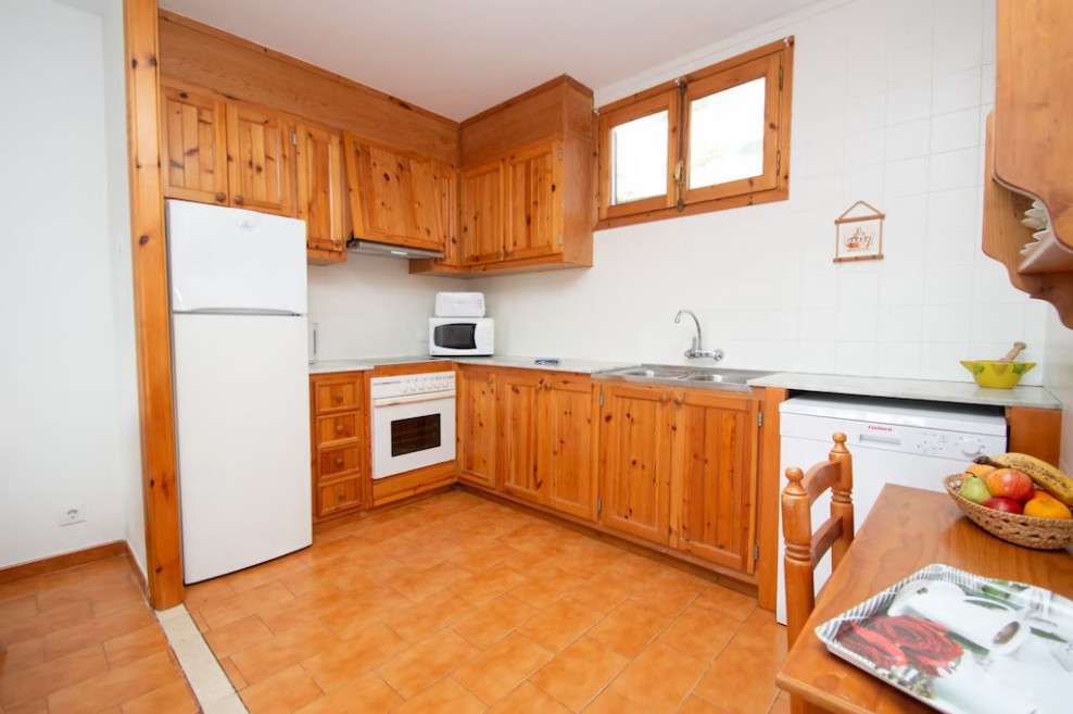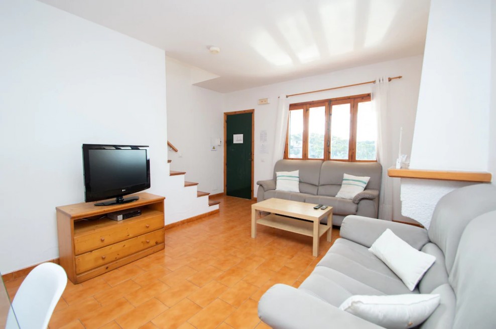 On the ground floor there is a living room which has two sofas, a TV, an inside table for all guests. The kitchen has a hob, fridge, oven, microwave, kettle, toaster and all necessary kitchenware. This floor also has a balcony where you can enjoy outdoors meals while you are looking at the landscape of Cala Galdana. It is equipped with air conditioning and WiFi.