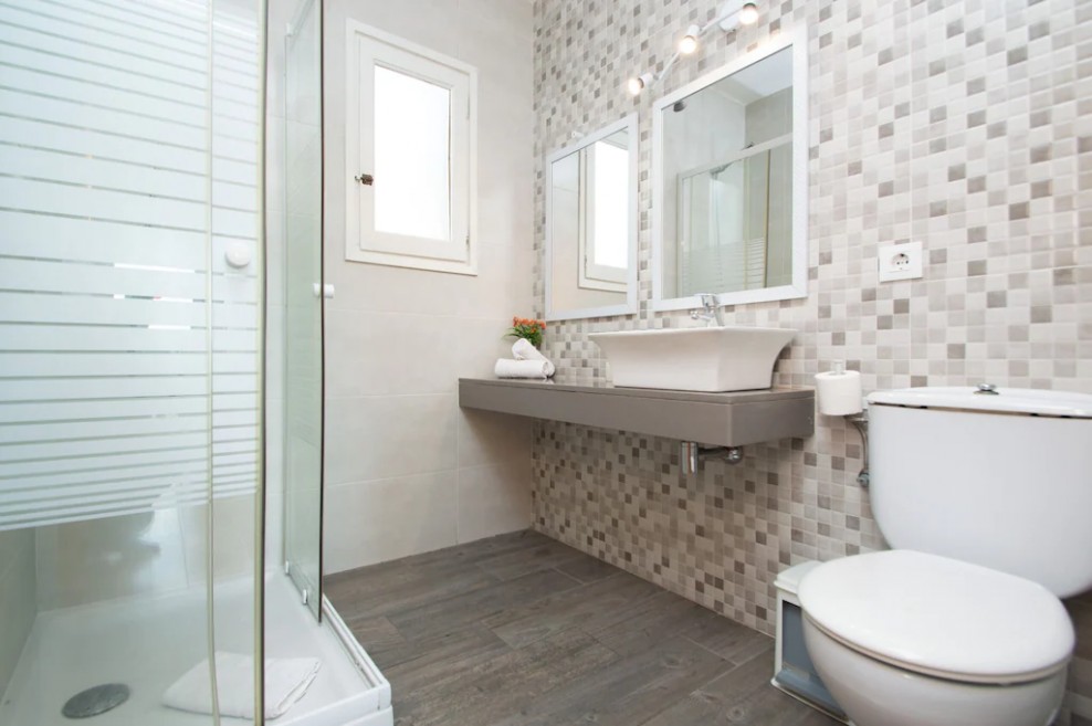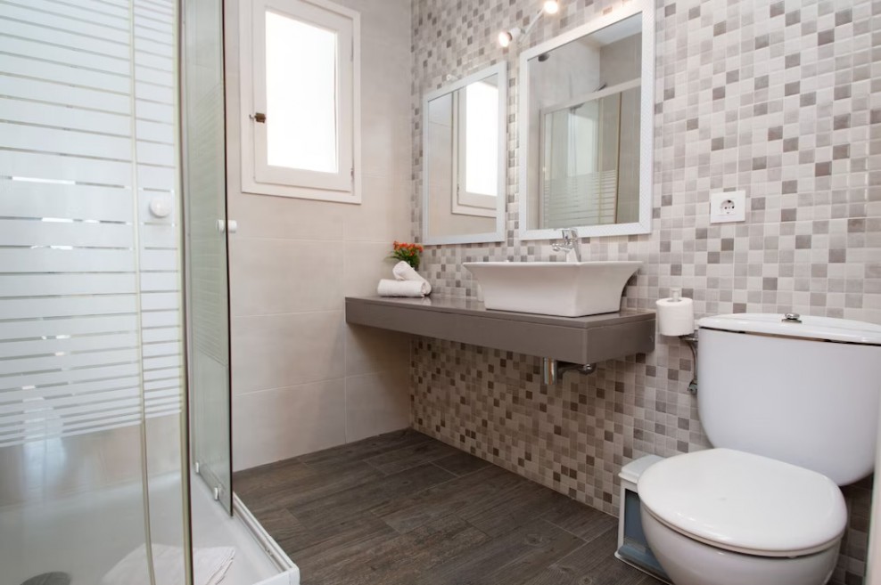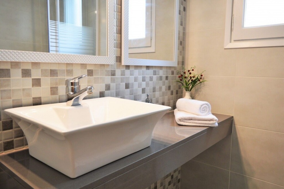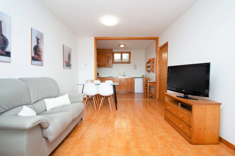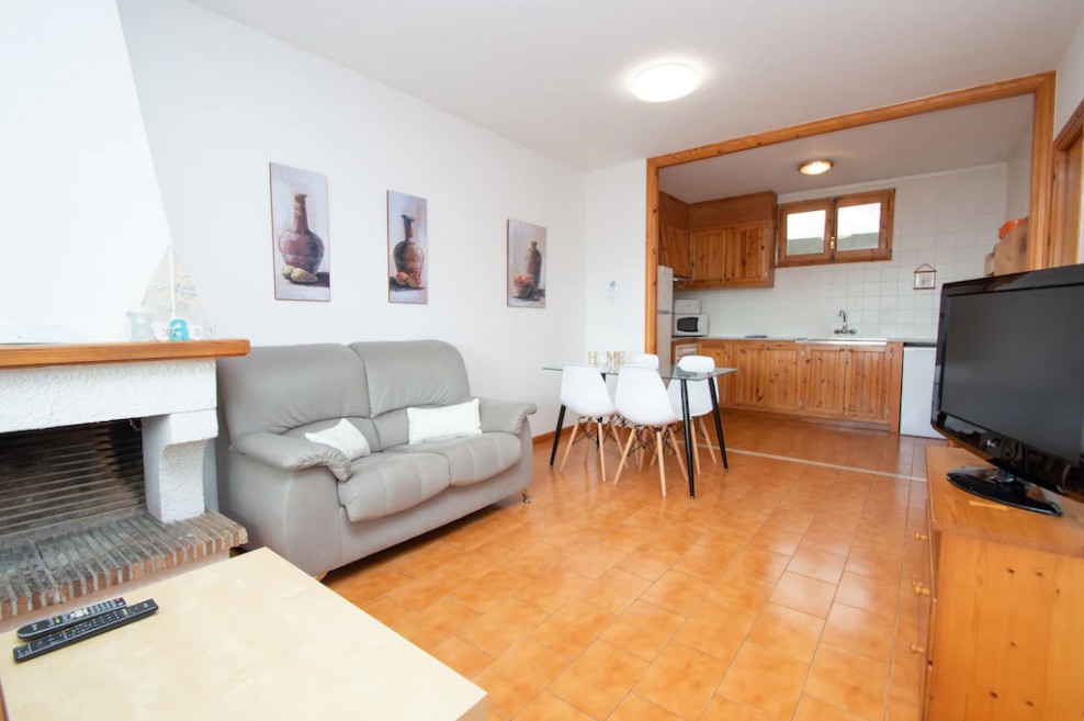 On the ground floor there is a living room which has two sofas, a TV, an inside table for all guests. The kitchen has a hob, fridge, oven, microwave, kettle, toaster and all necessary kitchenware. This floor also has a balcony where you can enjoy outdoors meals while you are looking at the landscape of Cala Galdana. It is equipped with air conditioning and WiFi.