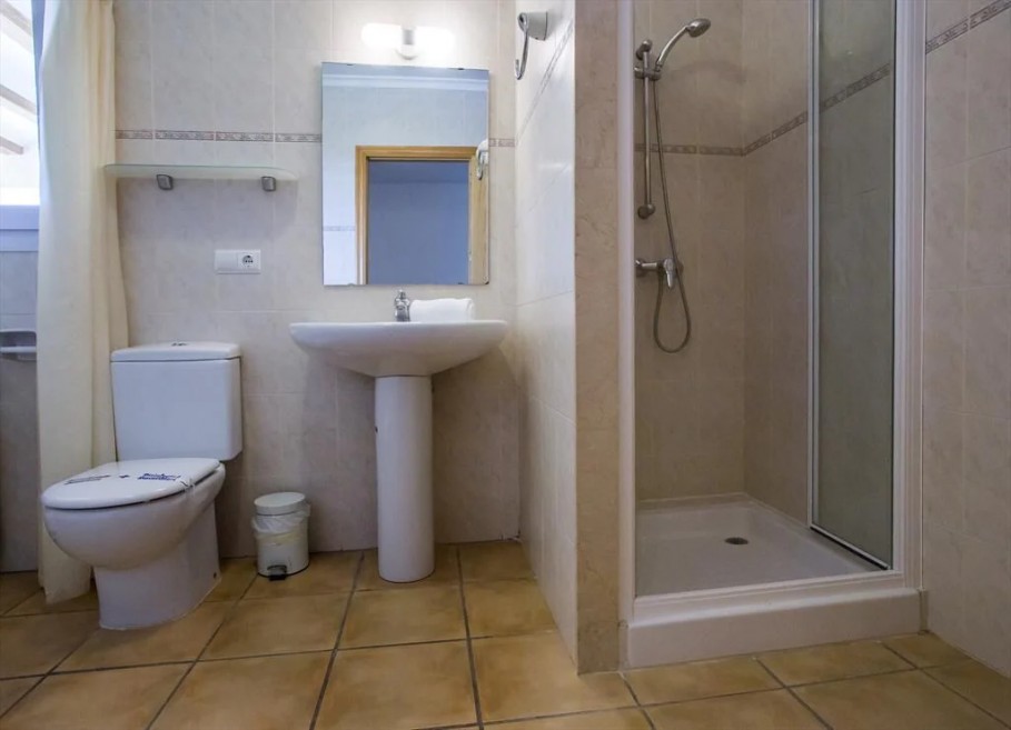 - bathroom with shower and toilet