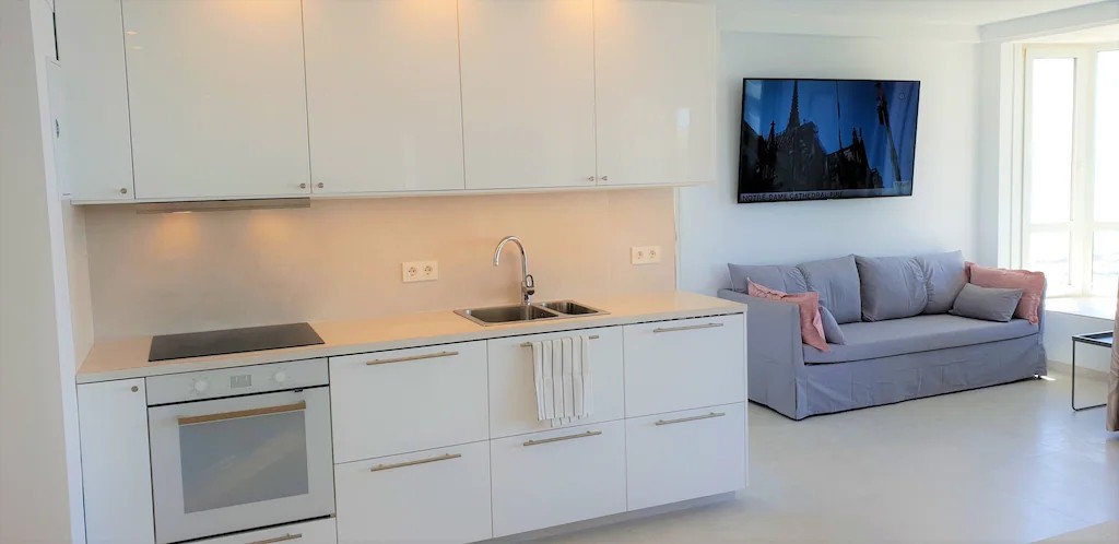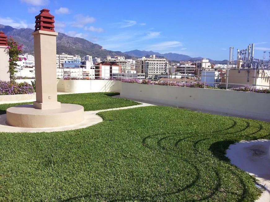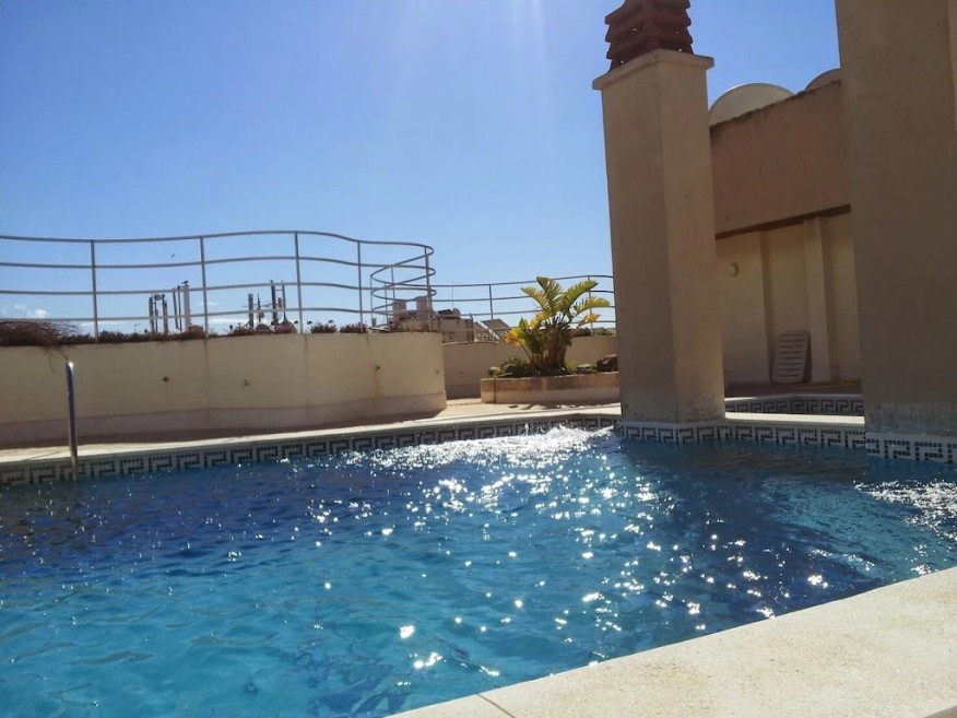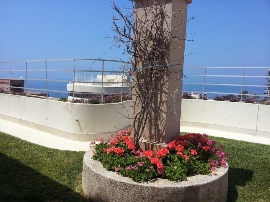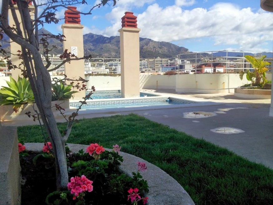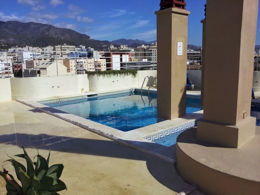 There is a lovely rooftop garden and swimming pool, accessed by stairs almost outside the apartment door, with stunning views to the mountains and coast. The pool will only be warm enough from May onwards, depending on the weather.