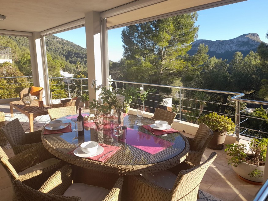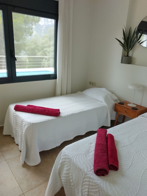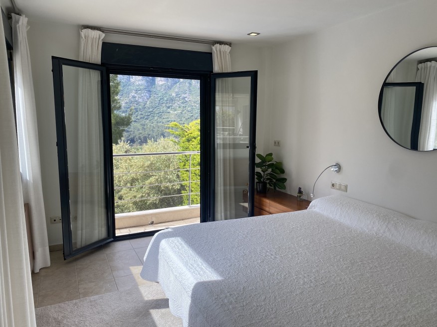 The villa sits at the top of the valley and has stunning views with mountains all around. There is direct access to wonderful walking country. From the front door a track can be followed to the summit of Mont Monduver where the mediterranean sunrise can be viewed. With clear visibility the view extends along the coastline, north to Valencia and the mountains beyond and south to Javea (Xabia), and to the east Ibiza.