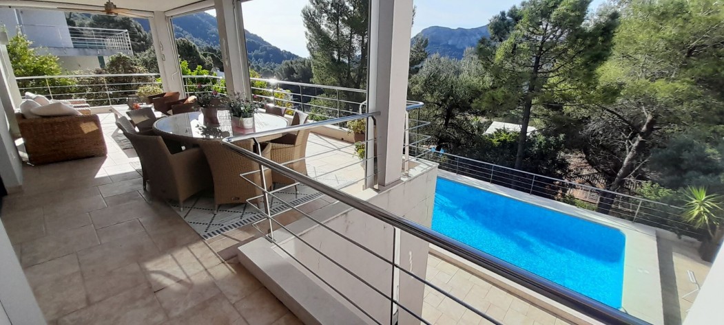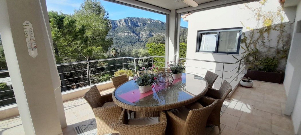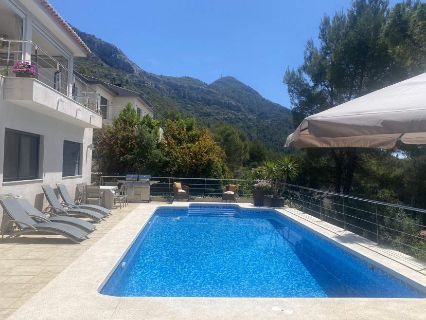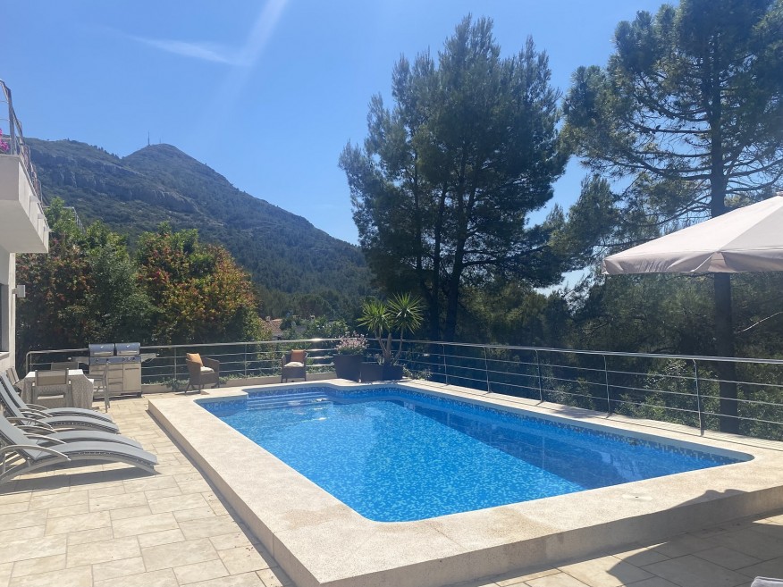 Villa with private pool and stunning mountain views. Beautifully designed and high specification villa with flowing living space. Stunning views with direct access to nature and short walk to local mountain village. The coast is a short drive away with beautiful sandy beaches. Short train ride to Valencia.