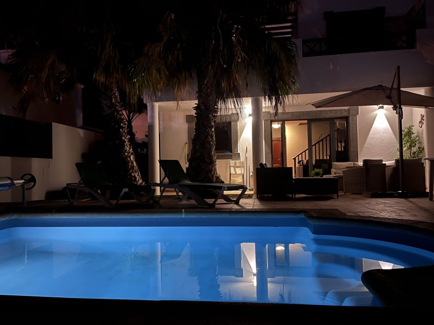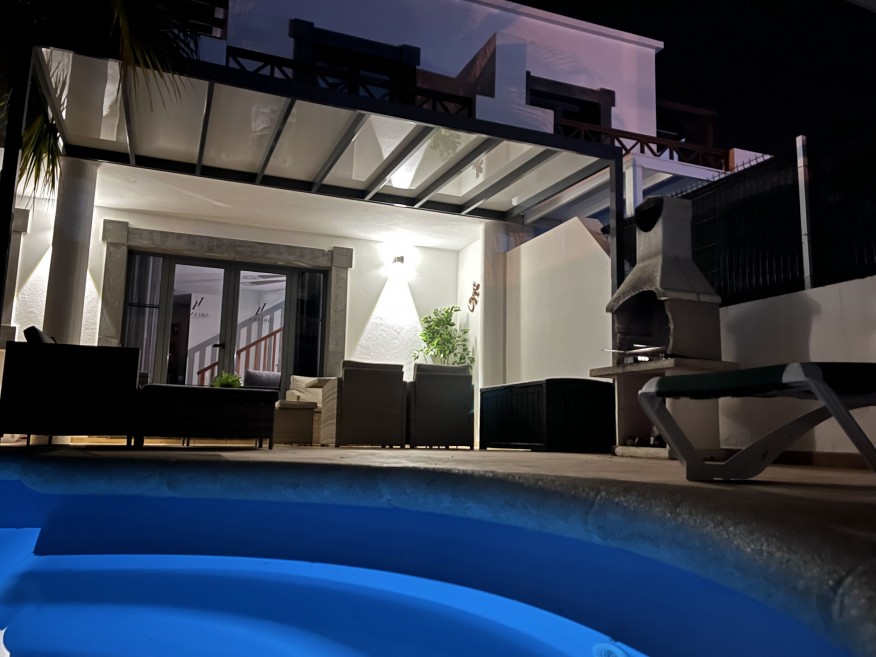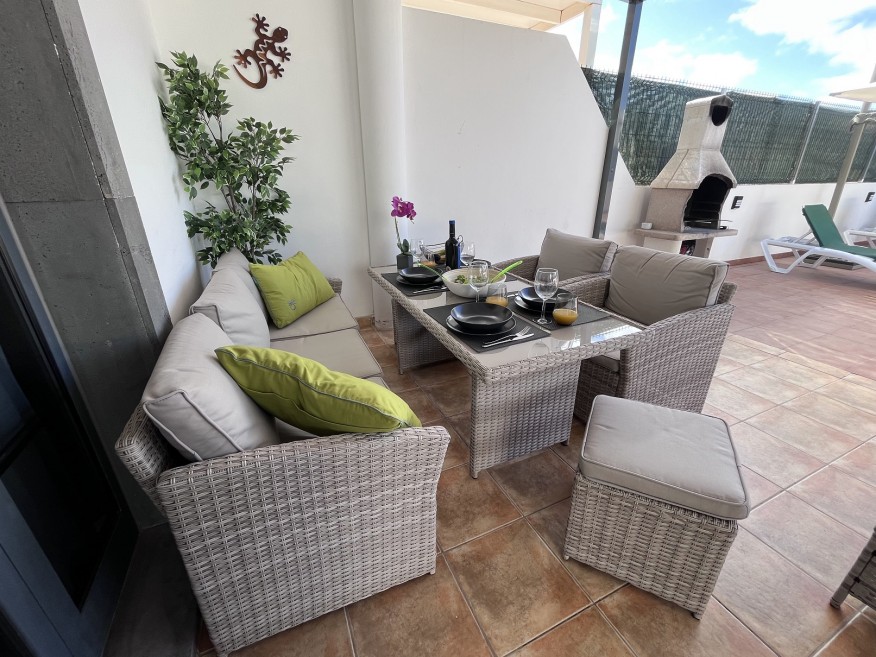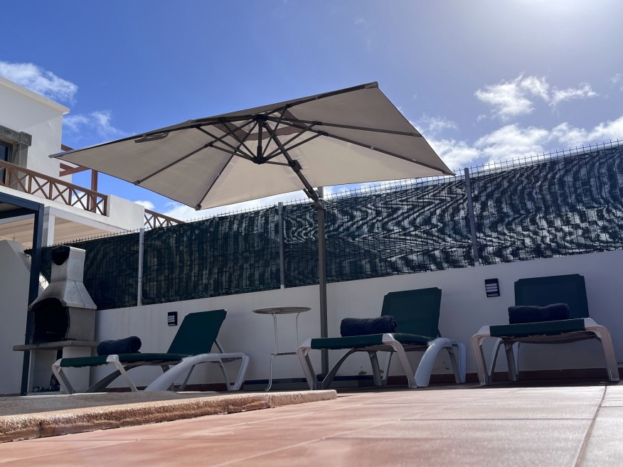 The living room door leads to the shaded al fresco dining area, with seating for 6 and a chill out sofa for 3. The sun terrace provides 5 sun beds and a 4.2m x 3m (depth approx 1.6m), electrically heated (November to April inclusive) private pool, with stepped entry. There is a built in Canarian BBQ perfect for the nominated chef in the party.