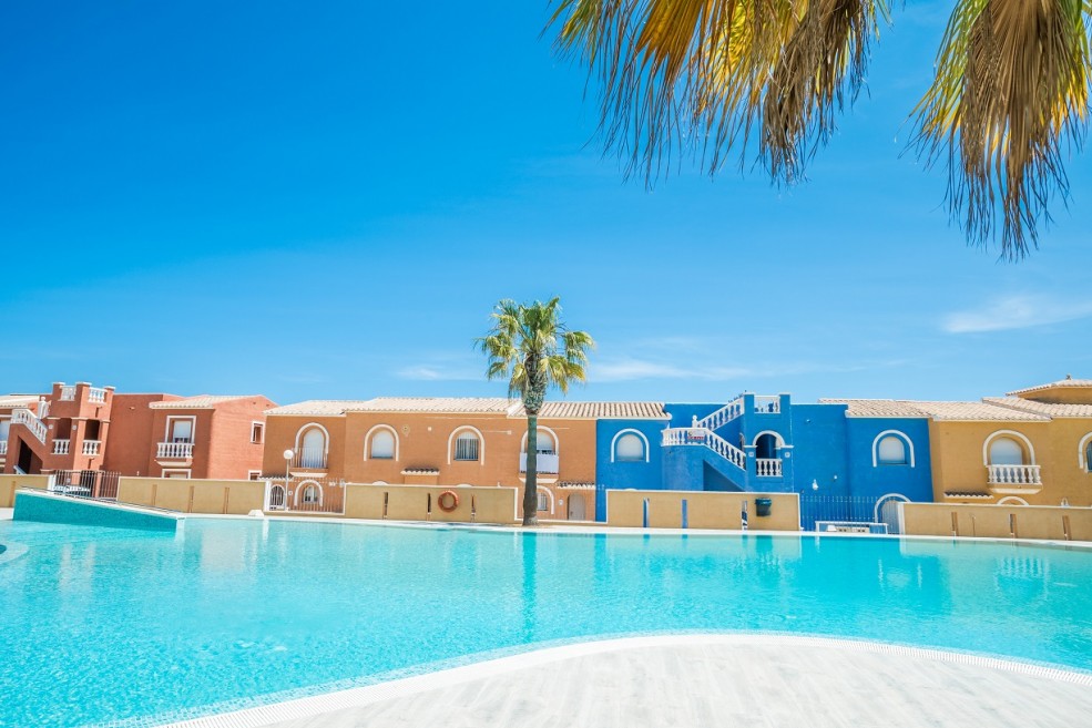 A big lagoon pool, terraces, a social club, and a garden are among the shared areas.