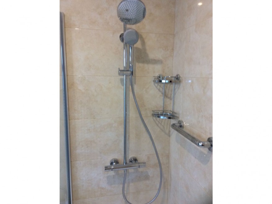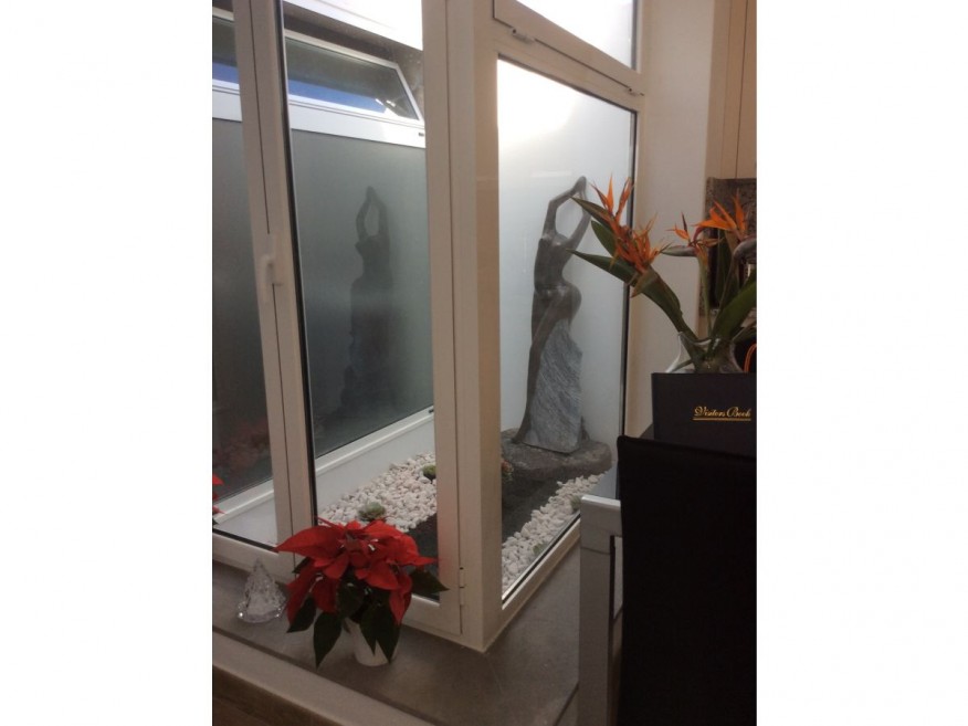 The two wide windows in the living area open onto the sun terrace, providing a view of the sea and brightening up the entire property. Relax with your favorite drink in the living room, which features German, English, and Spanish television.