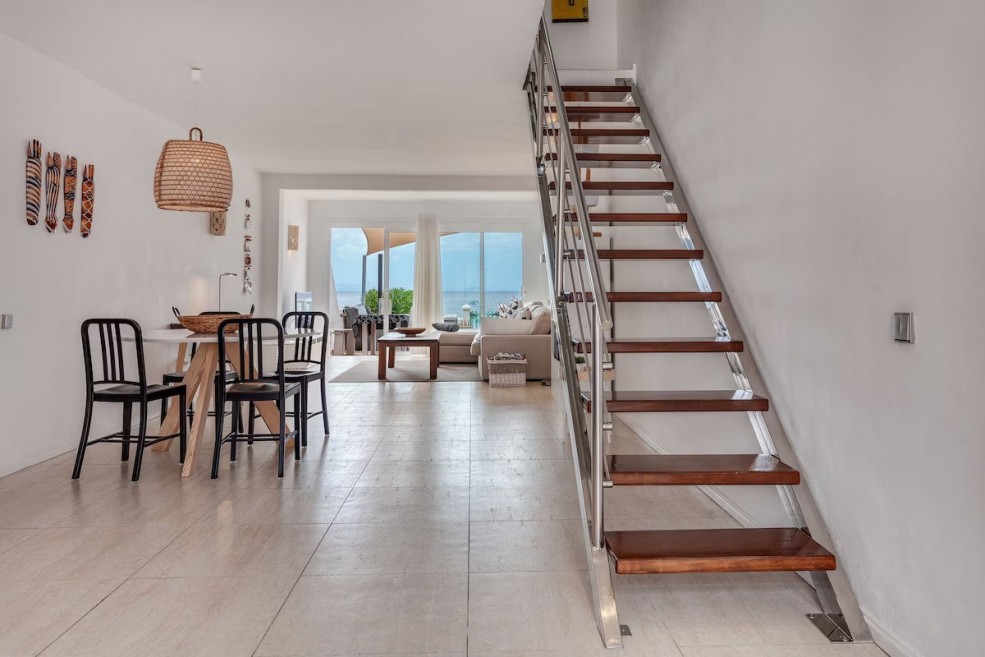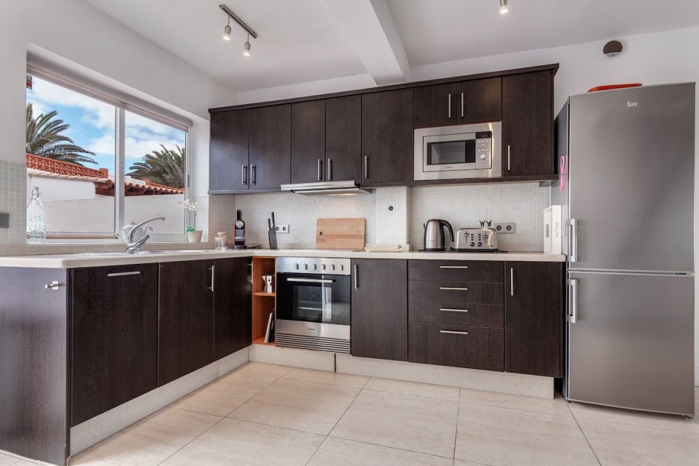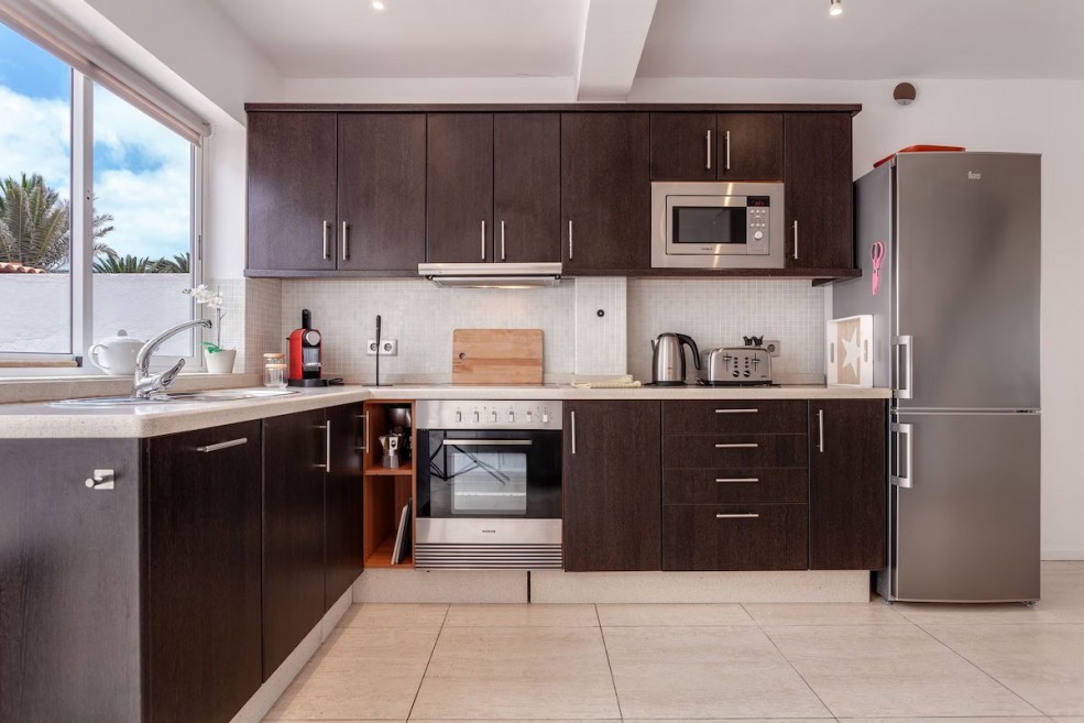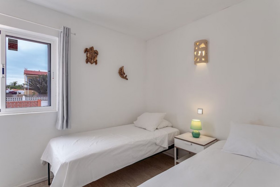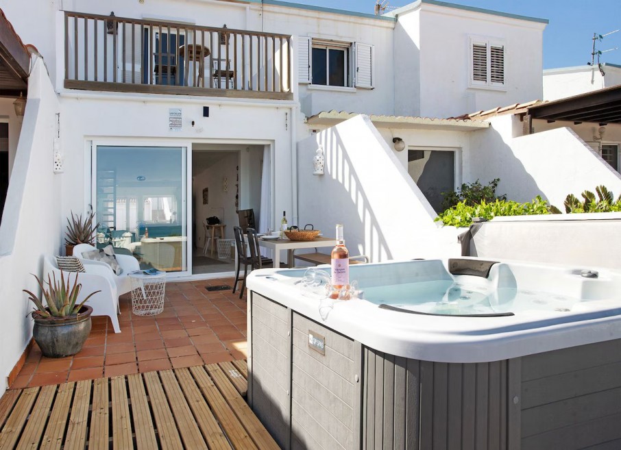 The lovely refurnished seafront villa “Luxury Oceanfront” is situated in Corralejo, in the north of Fuerteventura, and perfect for relaxing holidays on the wonderful island. The 2-storey villa consists of a living room, a well-equipped kitchen, 2 bedrooms (one with 2 single beds) as well as one bathroom and can therefore accommodate 4 people. Additional amenities include Wi-Fi, a safe and a television. On the first floor, there is a balcony with a gorgeous view of the sea, on which you can start your day with a coffee before enjoying breakfast on the sunny terrace on the ground floor. The jacuzzi is a great way to relax, as well as the deck chairs in the grass field, where you can bask in the sun before cooling off in the glistening sea, literally 20 m from the villa. The closest supermarkets are 650 m (8-minute walk) from the property and the nearest restaurants are 450 m (6-minute walk away). An 8-minute walk (650 m) from the home, you will find the town’s main street with numerous shops, restaurants, bars and cafés. Corralejo is next to a silent volcano, the “volcanes de bayuyo”, which is only a 14-minute drive (6 km) away, and there are hiking trails leading all the way up. The airport is located 40 km (32-minute drive) south of Corralejo.