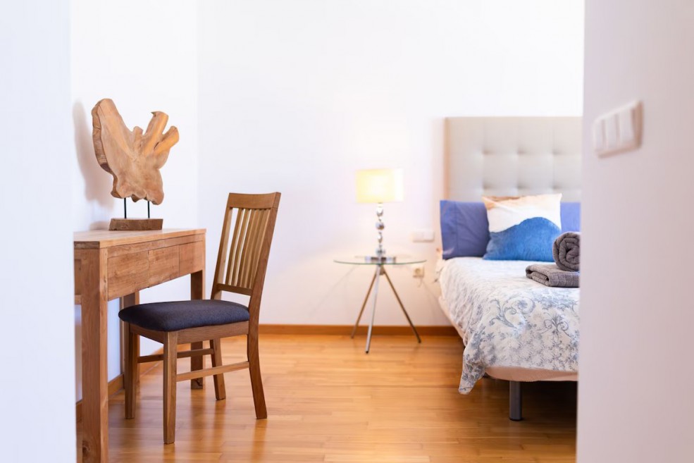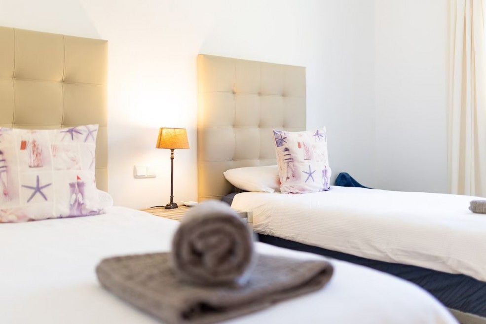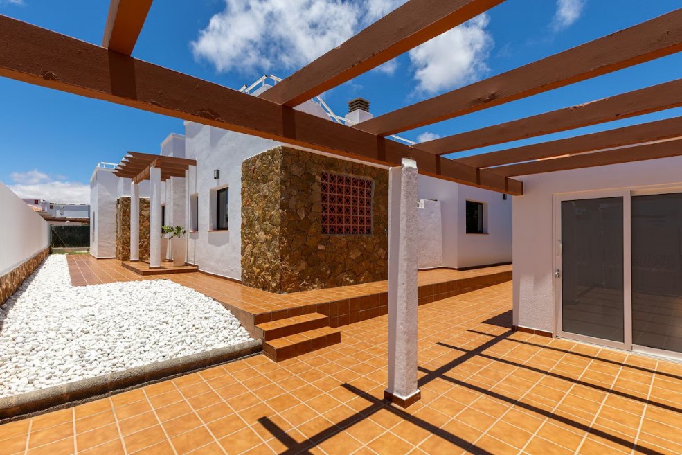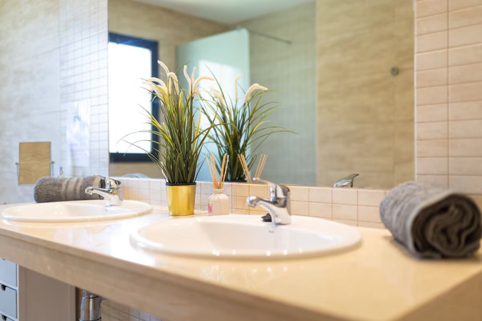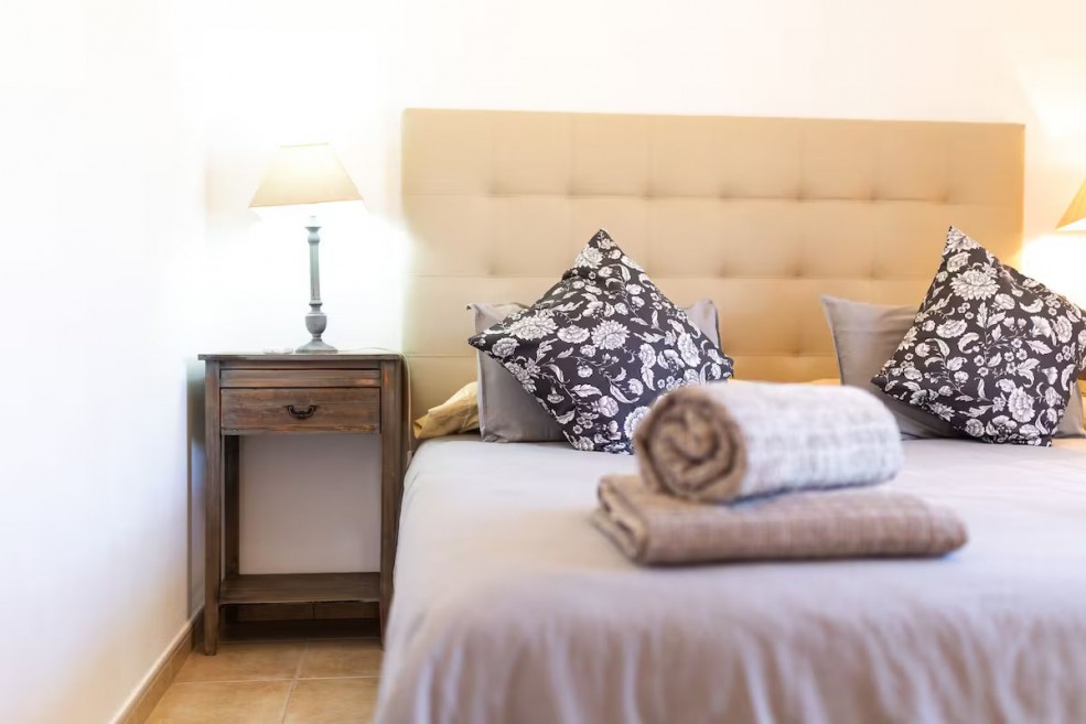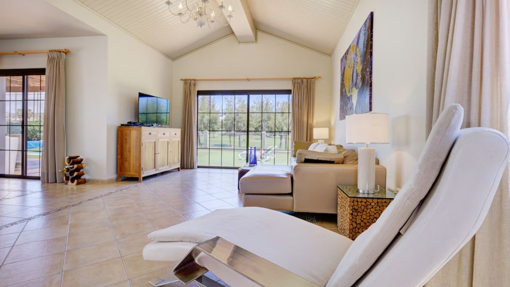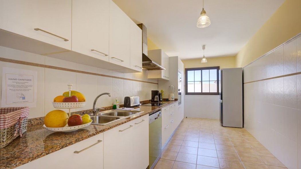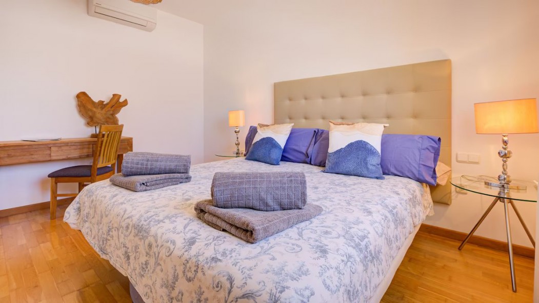 Superior 4 bed villa, with ample open living space. Large planted and grass garden with heated pool and relaxing sun loungers. Car parking is safe and immediate to the house. The interior living space flows between the kitchen, dining and seating areas. A comfortable couch allows you to watch a movie, read quietly or relax for conversation time! There is also a separate office desk for computer work. An eight seater dining table is a great forum for lively lunches even though most of our meal times are spent outdoors at the outdoor dining table. There are four generous bedrooms. 2 of them are double bedrooms, one of these has direct access to the pool. The other double room in en suite. There are two twin bedrooms. Each bedroom has black out curtains for light sleepers or early wakers! A large communal bathroom is available for all bed rooms, as well as a guest bathroom in the entrance hall. Stepping into the garden brings it's many additional layers of the property into immediate focus. The BBQ area, the dining area, the pool and loungers, and the lushness of the garden is complimented by the trees and vegetation on the golf club. A glass wall defines the boundary of our house, but this is often forgotten as the greenery of both house and golf course blends together. The property is on one level with few steps to navigate, other than at the entrance to the house. There is also a vast roof top terrace with stunning views of the beach and golf course.