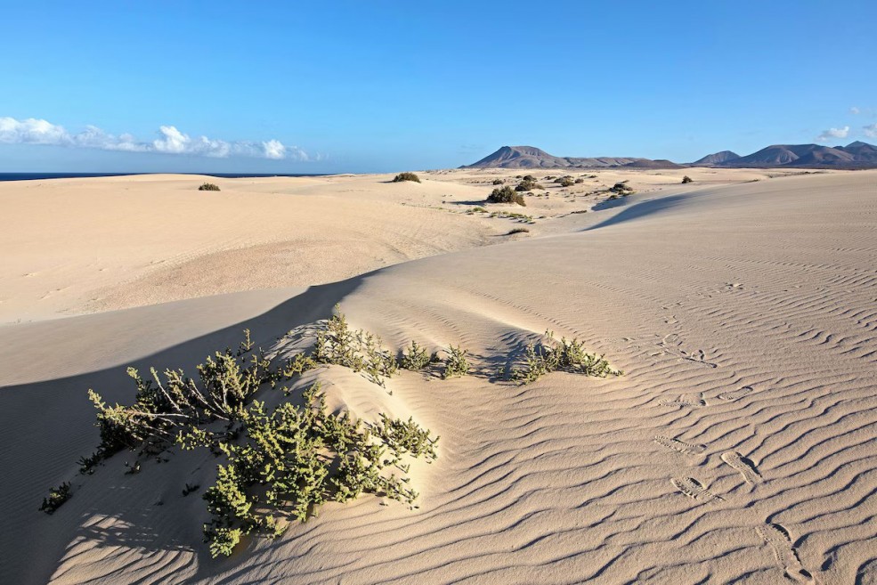 Overlooking the mountain, the vacation home "Villa 34" in Corralejo impresses guests with its fantastic views.