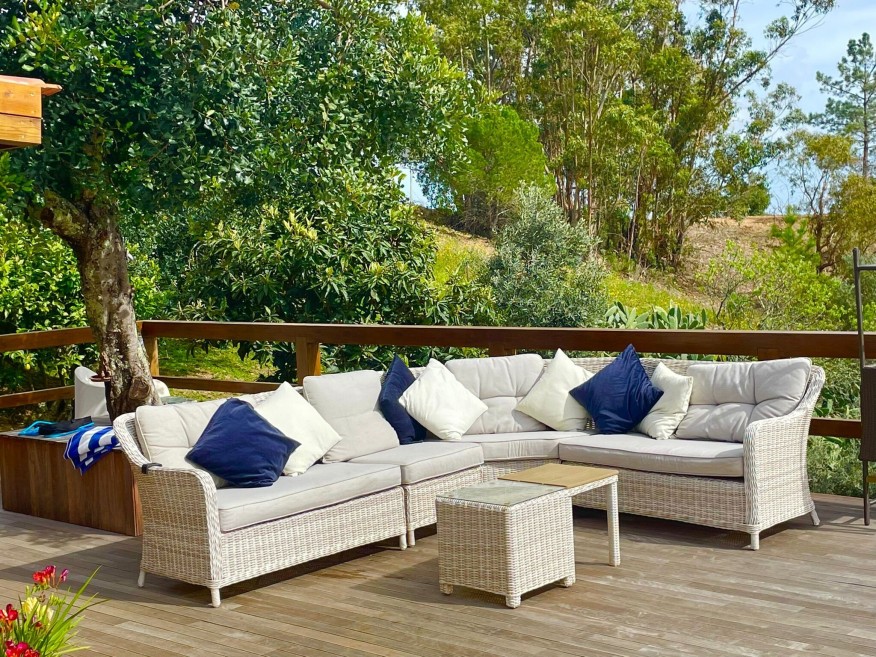 Our home is a traditional Portuguese house, split into 2 adjoining halves. South facing, we enjoy great sun all day long with the added benefit of stunning sunrises and sunsets. The rental half has 3 ensuite bedrooms and sleeps six comfortably, plus a sofa bed in the lounge. We live in the other half!